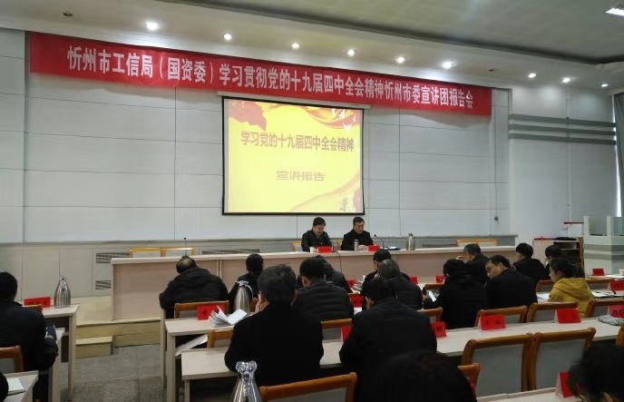 2019年11月26日上午,忻州市工信局(國資委)學習貫徹黨的十九屆四中全會精神忻州市委宣講團報告會在忻州市委黨校召開。市統(tǒng)戰(zhàn)部常務副部長鄭慧明同志在報告會上作宣講,市工信局黨委書記、局長吳瑞峰主持會議,工信局黨員干部、各監(jiān)管企業(yè)班子成員共180余人到會。公司黨委副書記陳志平、黨委委員趙培宏、王明生、邢春生等領導班子成員及相關人員參加。
