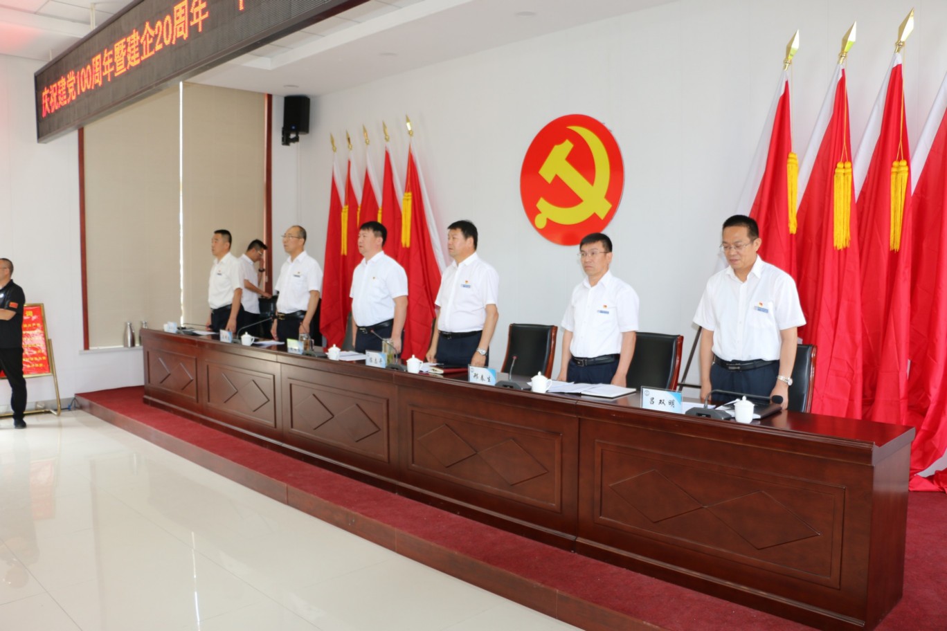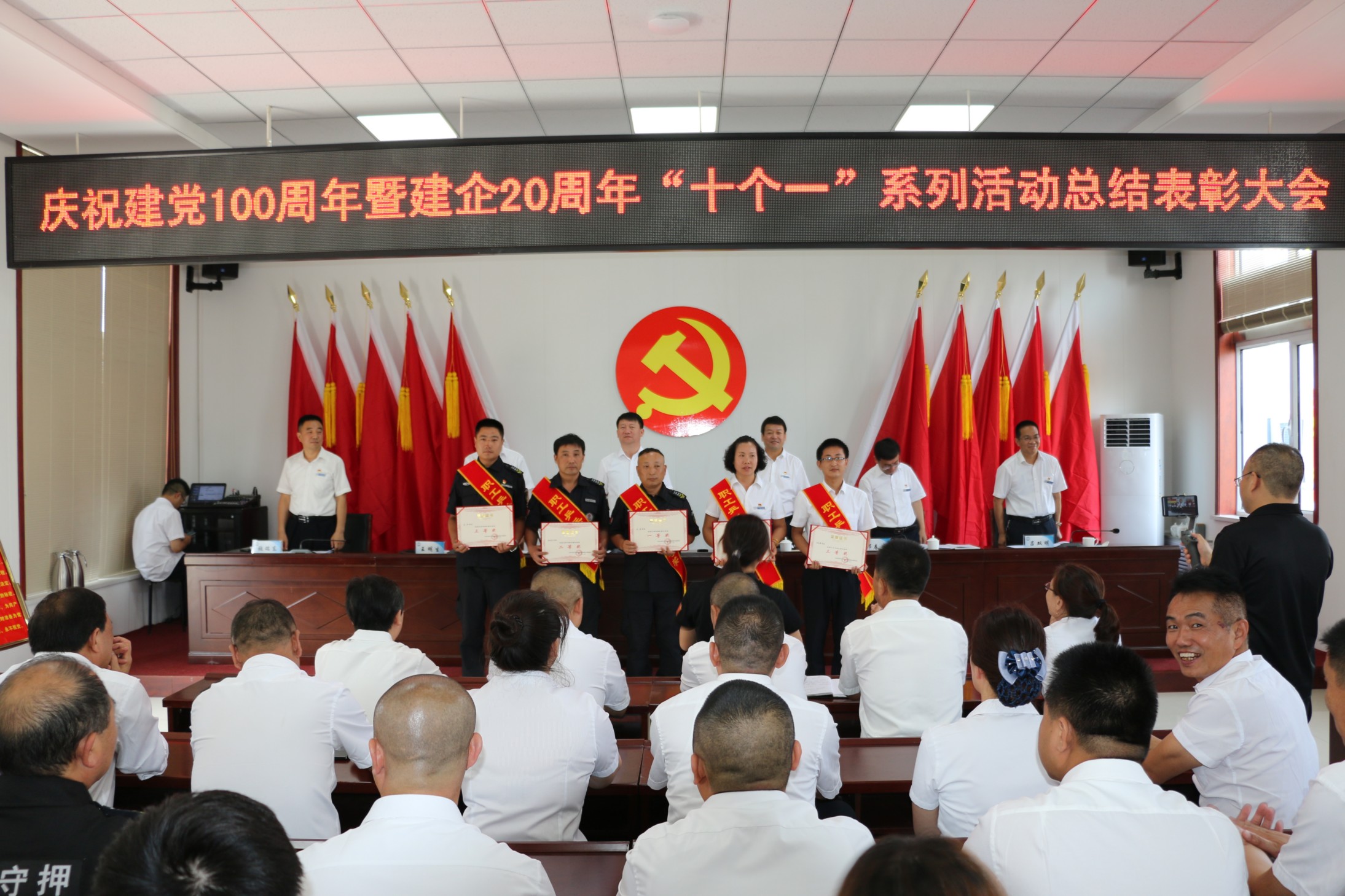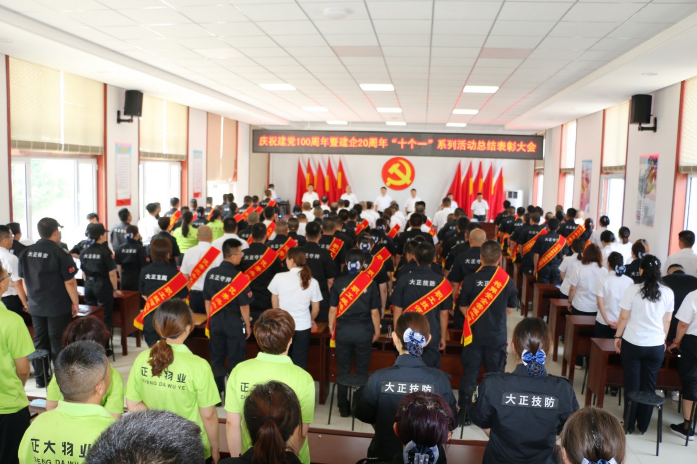 為熱烈慶祝中國(guó)共產(chǎn)黨成立100周年,頌揚(yáng)黨的光輝歷程,謳歌黨的豐功偉業(yè),傳承黨的優(yōu)良傳統(tǒng)和回顧公司發(fā)展歷程,不斷激發(fā)和進(jìn)一步激勵(lì)廣大黨員、干部職工統(tǒng)一意志、團(tuán)結(jié)拼搏,創(chuàng)先爭(zhēng)優(yōu)的奮斗熱情,實(shí)現(xiàn)公司更好更快發(fā)展、全面完成全年各項(xiàng)目標(biāo)任務(wù),6月30日上午,中共山西大正保安服務(wù)集團(tuán)有限公司委員會(huì)隆重召開(kāi)慶祝建黨100周年暨建企20周年“十個(gè)一”系列活動(dòng)總結(jié)表彰大會(huì),公司班子成員、中層以上領(lǐng)導(dǎo)、受表彰的先進(jìn)集體代表和先進(jìn)個(gè)人、2020—2021年度新發(fā)展黨員共計(jì)160余人參加會(huì)議,大會(huì)由集團(tuán)公司黨委委員、副總經(jīng)理王明生同志主持。