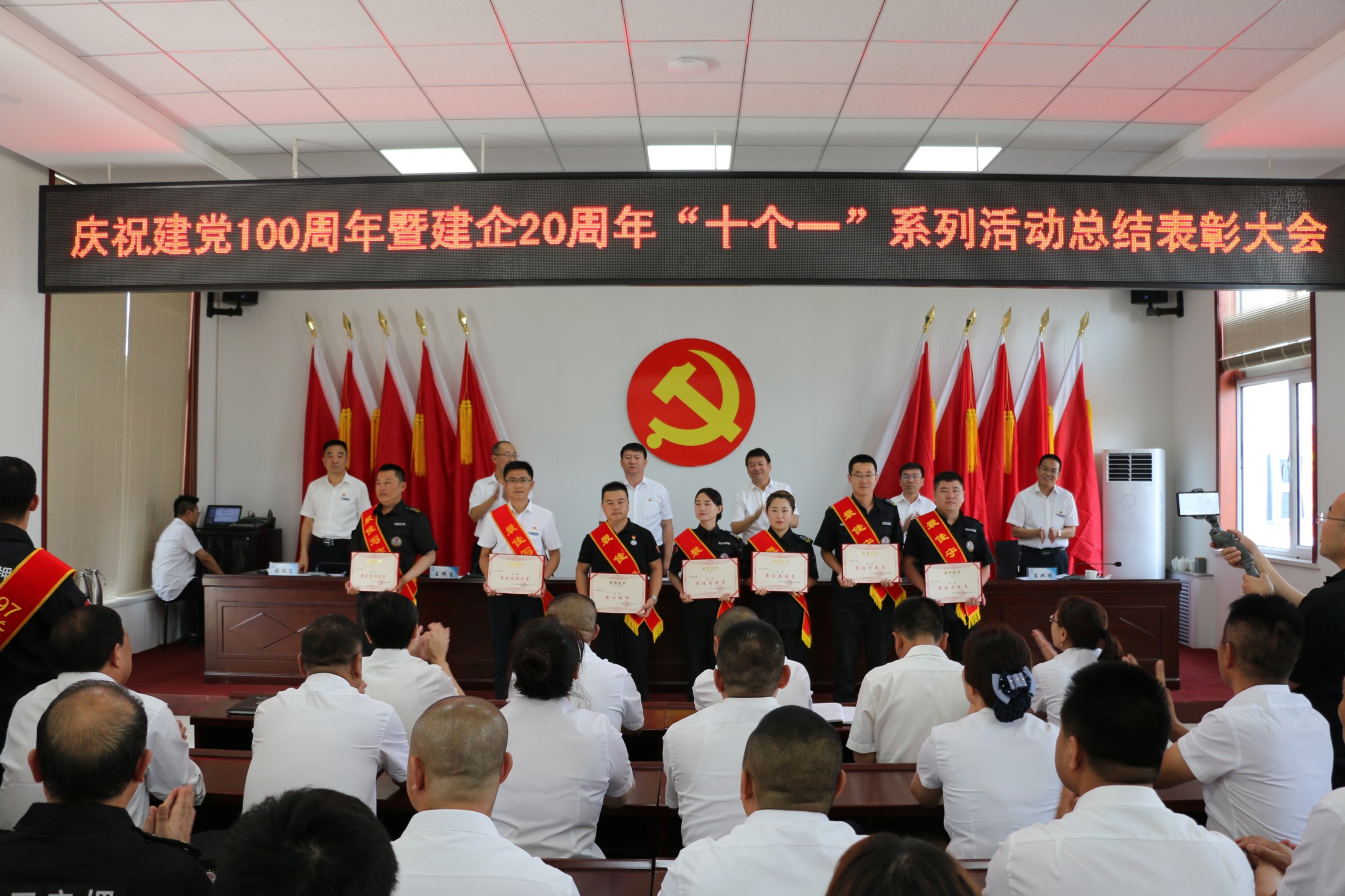 集團(tuán)公司黨委委員邢春生同志宣讀了《關(guān)于表彰集團(tuán)公司慶祝建黨100周年暨建企20周年“十個(gè)一”系列活動(dòng)獲獎(jiǎng)集體、獲獎(jiǎng)個(gè)人的決定》;黨委委員、副總經(jīng)理王明生同志向大會(huì)通報(bào)了今年上半年受到上級(jí)表彰的先進(jìn)集體和個(gè)人。
