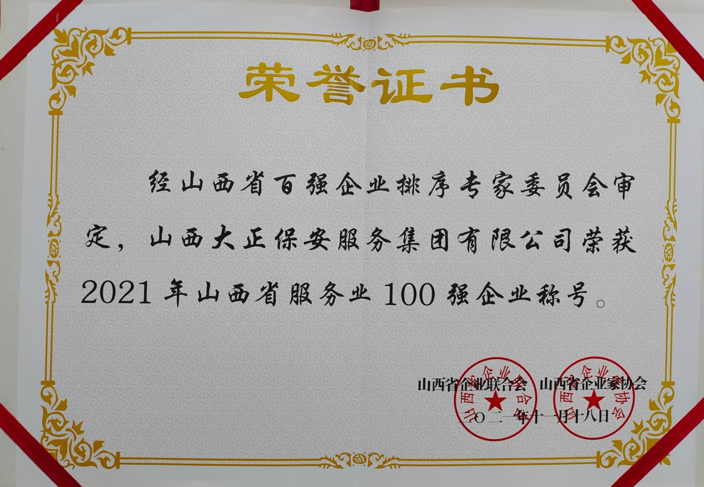 會議向社會發(fā)布“2021山西省企業(yè)100強(qiáng)”、“2021山西省制造業(yè)企業(yè)100強(qiáng)”、“2021山西省服務(wù)業(yè)企業(yè)100強(qiáng)”三項(xiàng)榜單。山西大正保安集團(tuán)連續(xù)第七年入榜“山西省服務(wù)業(yè)企業(yè)100強(qiáng)”,在今年榜單中名列第63位,實(shí)現(xiàn)社會知名度和品牌美譽(yù)度的進(jìn)一步提升。