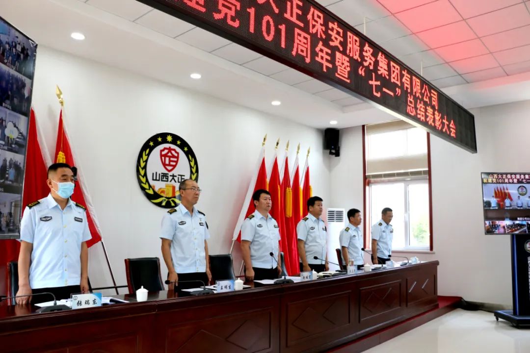 2022年6月30日上午,山西大正保安服務(wù)集團(tuán)有限公司召開慶祝建黨101周年暨“七一”總結(jié)表彰視頻會(huì)議,總結(jié)公司一年來(lái)黨建及其它各項(xiàng)工作,安排部署下一階段黨建及其它各項(xiàng)工作,表彰一批先進(jìn)基層黨組織、優(yōu)秀黨務(wù)工作者、優(yōu)秀共產(chǎn)黨員和黨風(fēng)廉潔先進(jìn)個(gè)人。動(dòng)員公司各級(jí)黨組織和廣大黨員干部職工進(jìn)一步統(tǒng)一意志、開拓創(chuàng)新、拼搏奉獻(xiàn)、扎實(shí)工作,推動(dòng)公司持續(xù)健康、快速發(fā)展,增強(qiáng)黨組織的創(chuàng)新力、凝聚力和戰(zhàn)斗力,推動(dòng)公司各項(xiàng)事業(yè)取得新成績(jī)、再上新臺(tái)階。