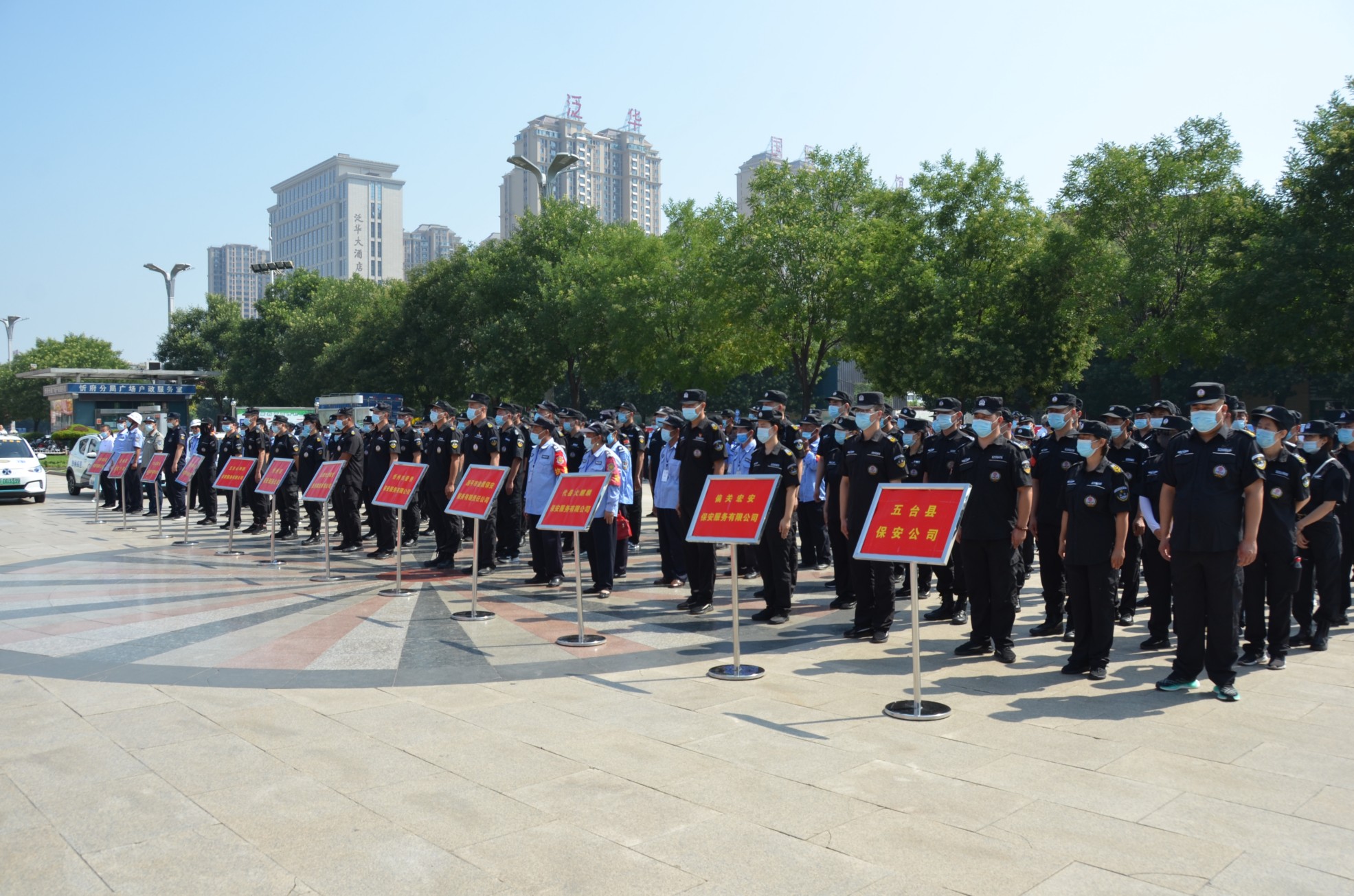 7月24日上午10時,我公司員工在忻州市體育廣場與各市縣保安公司員工200余人開展以“喜迎二十大,保安護平安”為主題的保安行業(yè)主題宣傳日活動。此次活動由忻州市公安局治安管理支隊負責人張志鵬主持,忻州市公安局黨委委員、副局長楊德華、忻州市保安協(xié)會領(lǐng)導(dǎo)出席。