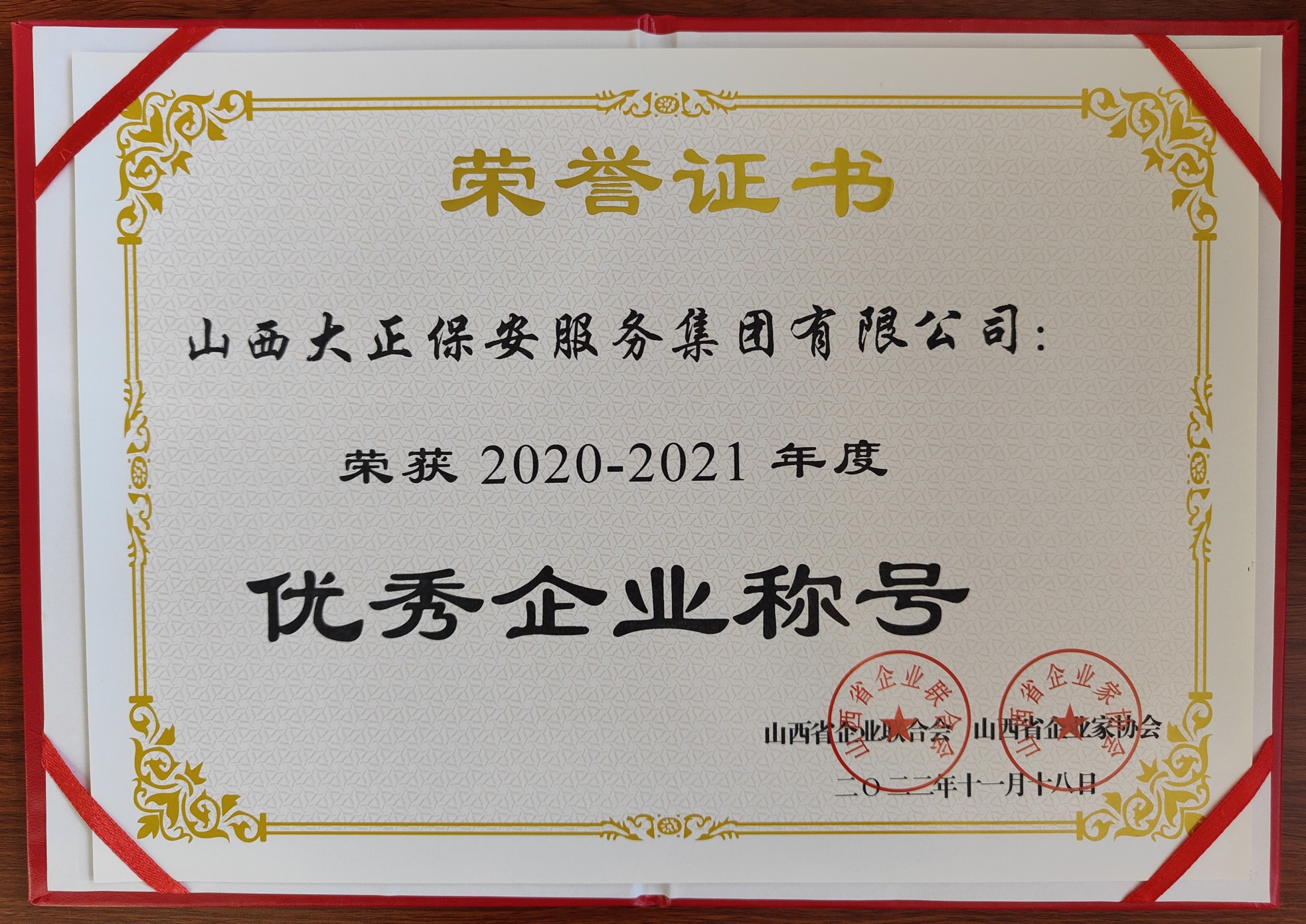 12月20日,山西省企業(yè)聯(lián)合會(huì)、山西省企業(yè)家協(xié)會(huì)召開第30次年會(huì)暨2022山西企業(yè)100強(qiáng)發(fā)布會(huì)。山西大正保安服務(wù)集團(tuán)有限公司入圍“2022山西服務(wù)業(yè)企業(yè)100強(qiáng)”、榮獲“2020-2021年度優(yōu)秀企業(yè)”稱號(hào),黨委副書記、總經(jīng)理趙培宏榮獲“2020-2021年度優(yōu)秀企業(yè)家”稱號(hào)。