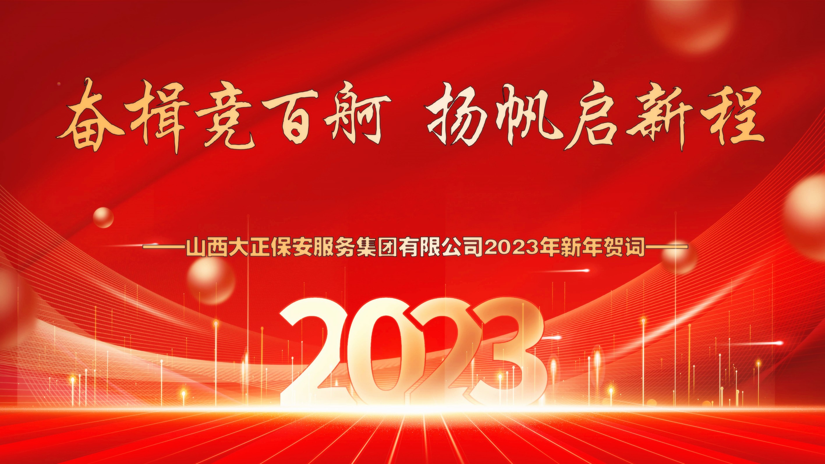 歲序更替,華章又新。2023的新年即將來臨,在這辭舊迎新、充滿希望的美好時刻,山西大正保安服務(wù)集團有限公司黨委、董事會及經(jīng)理班子,向集團公司全體黨員、干部、職工及背后默默支持大家的家屬朋友們,致以新年的祝福和節(jié)日的問候!向始終關(guān)心山西大正保安集團發(fā)展建設(shè)領(lǐng)導(dǎo)和同仁;向長期以來給予山西大正保安集團支持、信任的客戶和合作伙伴致以最衷心的感謝和最誠摯的新年祝福!