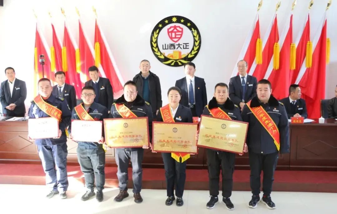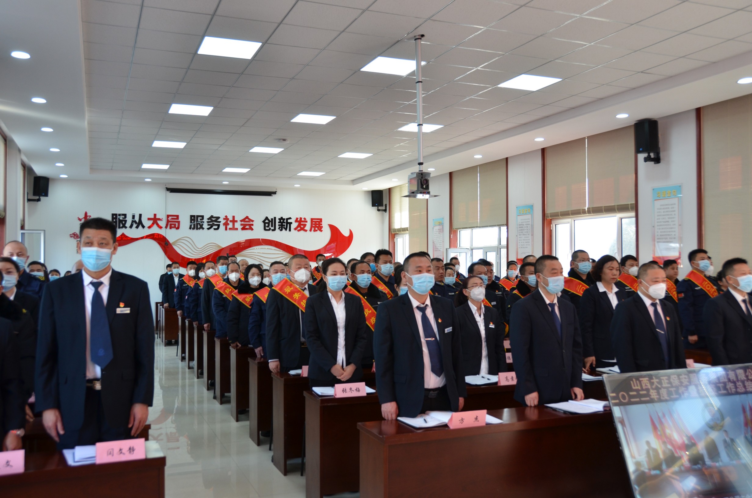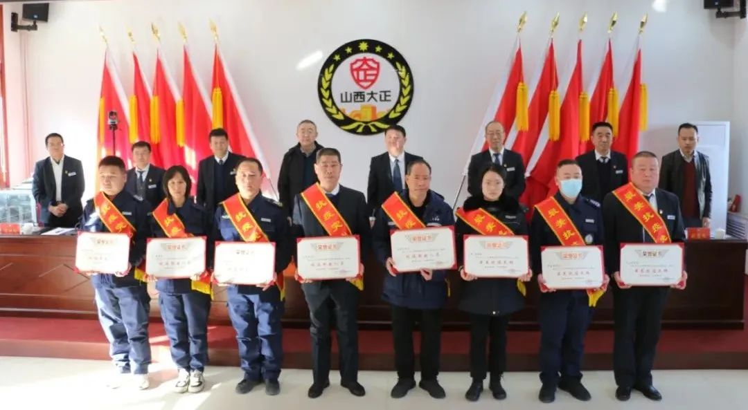 趙培宏在隨后的講話中指出:我們大正的英雄是奮戰(zhàn)在一線的戰(zhàn)士以及每一個奮斗的大正人。今天大會表彰的先進(jìn)集體和個人都是員工隊(duì)伍中的優(yōu)秀代表。他們在各自的工作崗位用汗水澆灌收獲,用奮斗詮釋擔(dān)當(dāng),樹起了一面面爭先創(chuàng)優(yōu)的旗幟。2022年集團(tuán)公司全體員工在公司黨委的領(lǐng)導(dǎo)下,搶抓機(jī)遇、迎難而上、共謀發(fā)展,取得了經(jīng)營業(yè)績和客戶滿意的雙重勝利。在攻堅(jiān)克難中交出了一份優(yōu)異的成績單,營業(yè)總收入持續(xù)保持上升,2022年全年?duì)I業(yè)總收入18356萬元,實(shí)現(xiàn)利潤804萬元,實(shí)現(xiàn)稅金770萬元。對自主經(jīng)營條件成熟的2家子公司--山西大正億通保安安全技術(shù)有限公司、山西大正昇成刻章服務(wù)有限公司試行自主經(jīng)營、獨(dú)立核算,檔案管理中心、物流倉儲中心、與四川華飛合作培養(yǎng)航空專業(yè)人才等創(chuàng)新業(yè)務(wù)持續(xù)拓展,推動了山西大正集團(tuán)行穩(wěn)致遠(yuǎn),基業(yè)長青。2022年我們擔(dān)當(dāng)國企使命,在抗疫攻堅(jiān)中再建新功。面對忻府區(qū)多次突發(fā)疫情,公司成立工作領(lǐng)導(dǎo)小組,員工深入一線積極開展疫情防控工作,積極參與師院東校區(qū)隔離點(diǎn)疫情防控工作,山西大正人用雙手傳遞餐食、用肩膀扛起物資、用腳步丈量責(zé)任、用行動踐行初心。圓滿完成了每一項(xiàng)艱巨繁重的工作任務(wù),為決戰(zhàn)決勝疫情防控阻擊戰(zhàn)作出了重要貢獻(xiàn),并得到了市政府的高度肯定和社會各界一致好評。