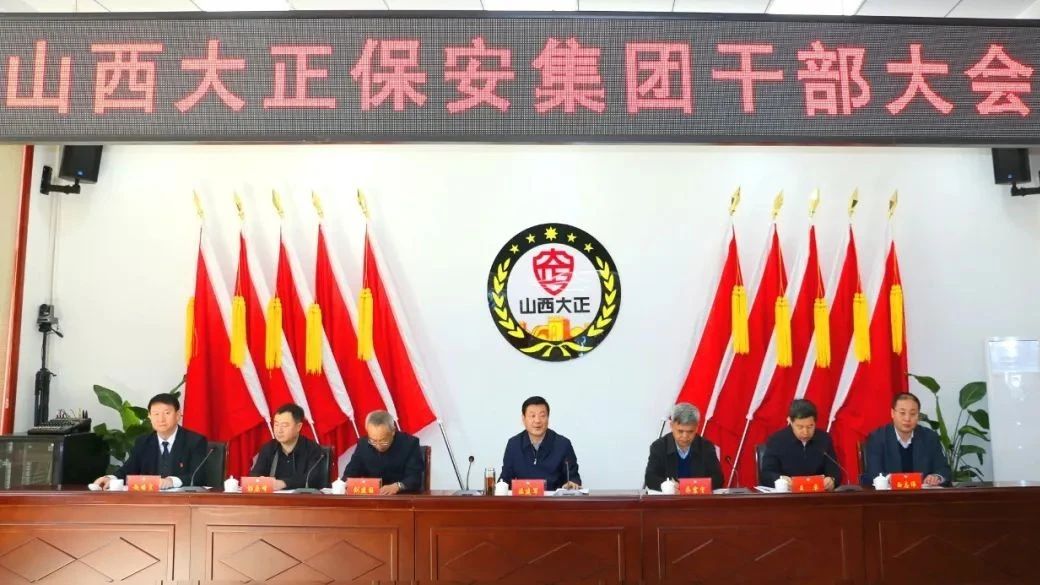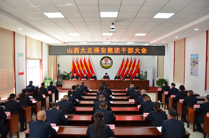 2023年3月6日,山西大正保安服務集團有限公司召開干部大會,宣布市委關于公司主要領導任命的決定。忻州市委常委、副市長溫建軍出席會議并講話。市委組織部副部長、老干部局局長喬震宇,市政府副秘書長劉建國,市國資委黨委專職副書記彭原峰、市委組織部干部四科科長白志偉、市政府辦公室秘書七科科長徐鵬程出席會議,公司中層以上干部參加會議。市工信局(國資委)黨委書記、局長王卓主持會議并講話。