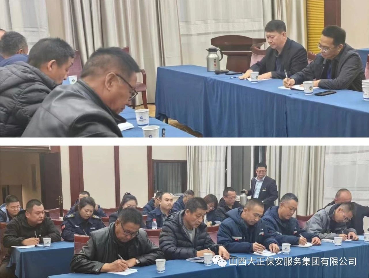 為深入貫徹落實省、市領導重要指示批示精神,確保公司安全運行無事故,山西大正保安服務集團有限公司召開安全生產(chǎn)工作安排部署會議,進一步提升安全防范意識和管理水平,樹牢安全發(fā)展理念,扎實推進安全風險治理,壓實安全生產(chǎn)責任,堅決遏制重特大事故,夯實安全基礎。會上,集團公司黨委委員、分管安全副總經(jīng)理王明生作了具體安排和部署。