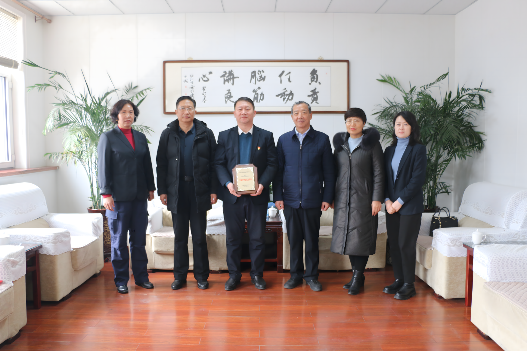 1月30日,受忻州市退役軍人事務局黨組書記、局長張耀民委托,忻州市退役軍人事務局黨組成員、副局長張培觀、四級調研員王樹康、三科科長張承香蒞臨公司,為集團公司送上由山西省退役軍人事務廳頒發(fā)的“2023年度山西退役軍人就業(yè)合作企業(yè)光榮榜”獎牌。
