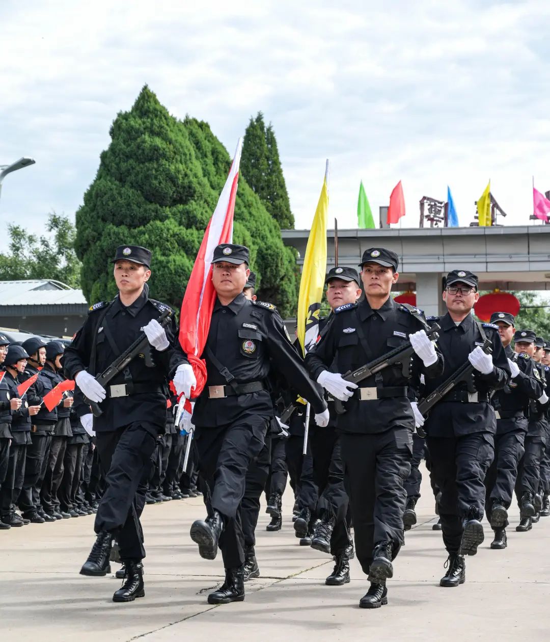 節(jié)日的公司院內(nèi)外,四周花團(tuán)錦簇,大門口燈籠高掛、彩旗飄揚(yáng),為節(jié)日增添了濃厚的喜慶氛圍。公司運(yùn)鈔車、巡邏車、運(yùn)兵車干凈整潔,排列在場(chǎng)地兩側(cè),升旗儀式更顯隆重。9時(shí)30分,集團(tuán)公司、各子公司領(lǐng)導(dǎo)和機(jī)關(guān)各部門、城區(qū)員工共300多人整齊列隊(duì),懷著激動(dòng)的心情,手持小國(guó)旗,臉上貼著愛國(guó)貼紙、洋溢幸福的笑容,眼神中充滿了對(duì)祖國(guó)的熱愛和對(duì)升旗儀式的期待。