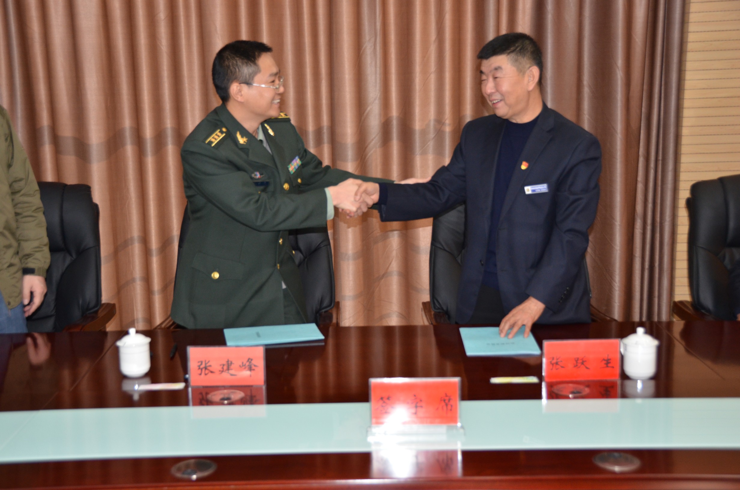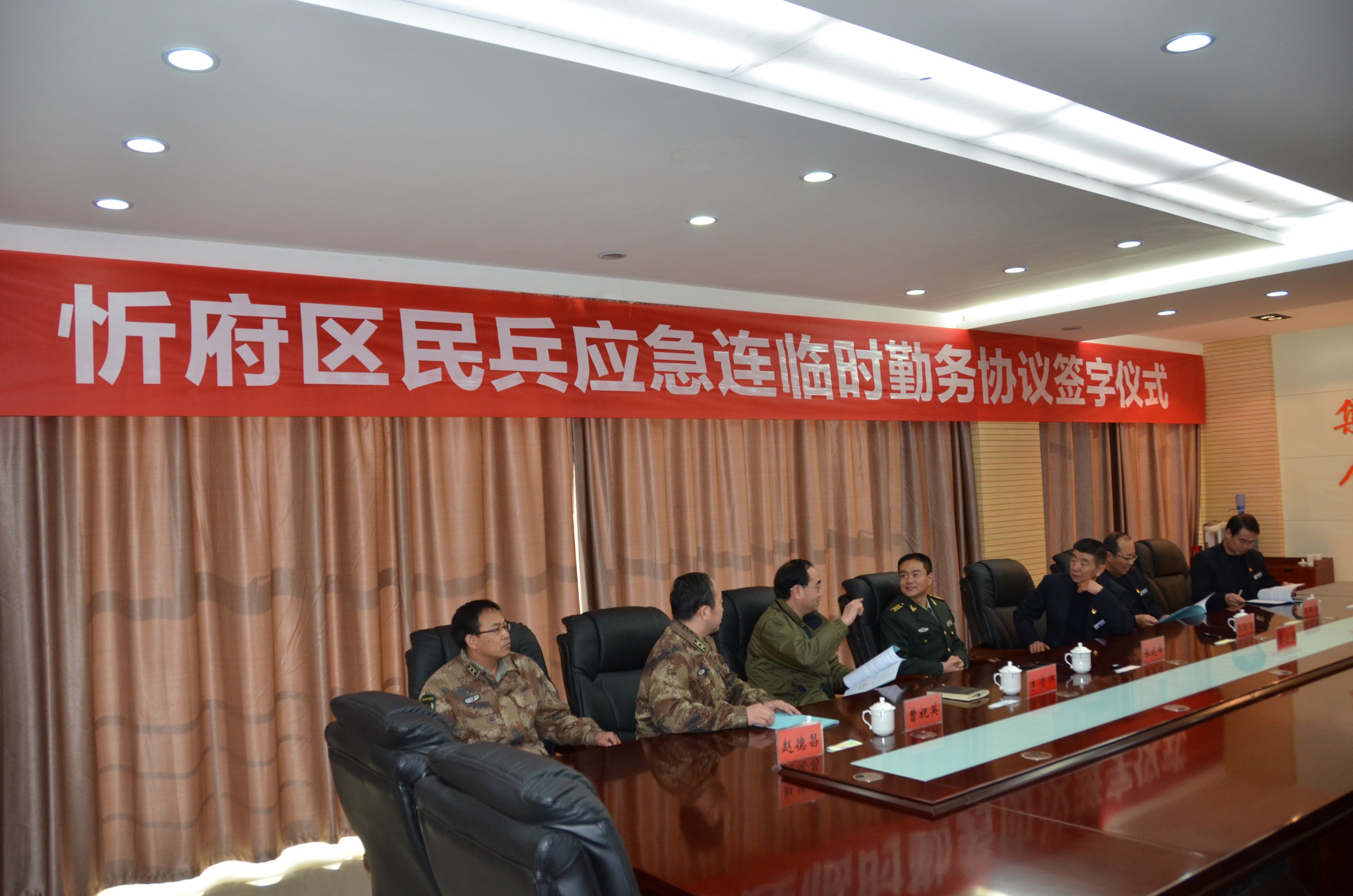 忻府區(qū)人民武裝部部長張建峰同志召集所屬負(fù)責(zé)人與我公司領(lǐng)導(dǎo)在該部會議室召開忻府區(qū)民兵應(yīng)急連臨時勤務(wù)協(xié)議簽字儀式。雙方領(lǐng)導(dǎo)暢談軍旅生涯,暢所欲言,對合作開展執(zhí)行勤務(wù)事宜進(jìn)行細(xì)致研究,武裝部領(lǐng)導(dǎo)對我公司的隊伍建設(shè)作風(fēng)以及企業(yè)服務(wù)精神面貌給與了充分肯定。