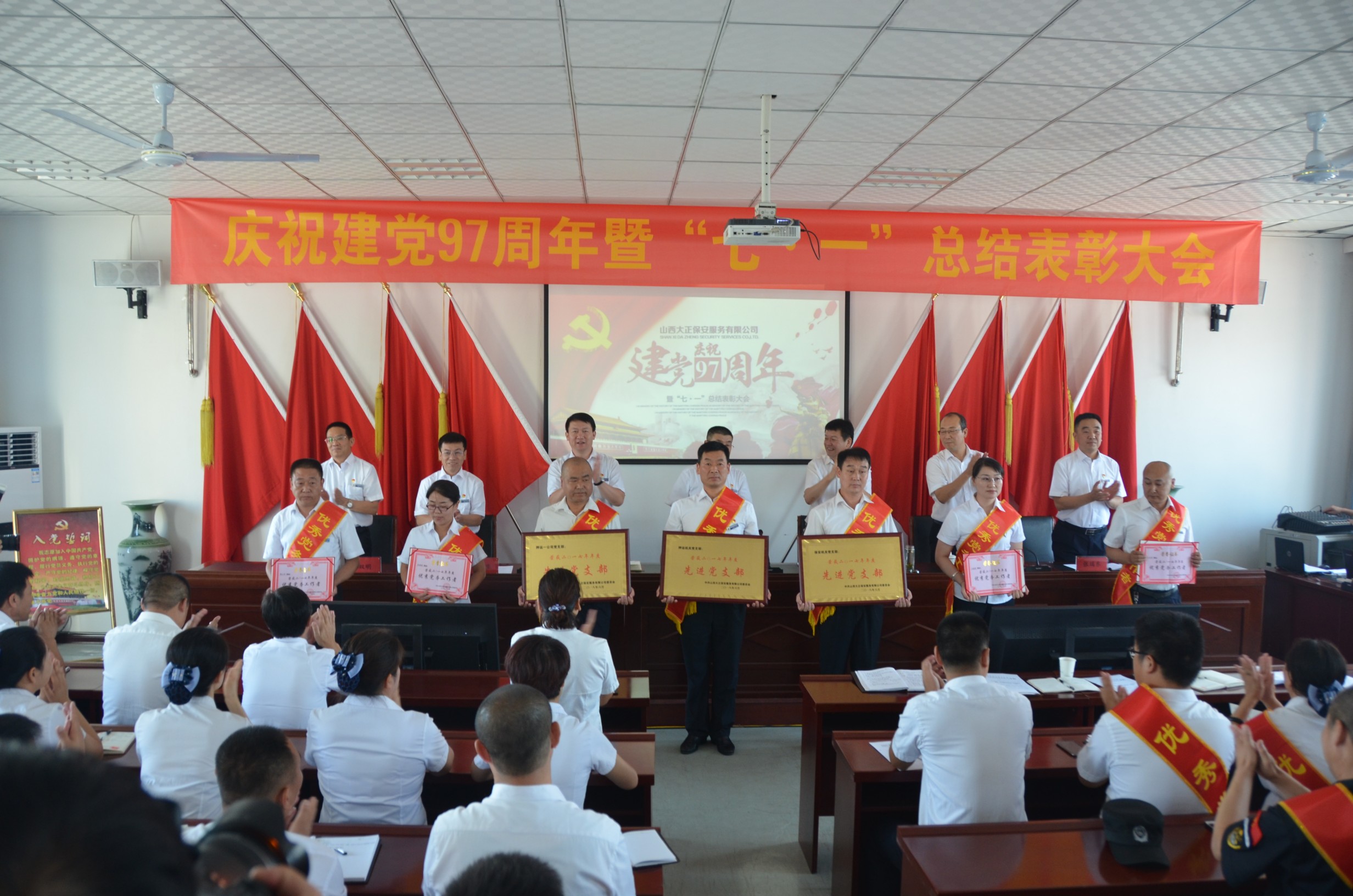 6月30日,公司召開慶祝建黨97周年暨“七·一”總結表彰大會,機關全體黨員、管理人員,受表彰的先進集體和先進代表在主會場參加會議,公司所屬各單位(中心)全體員工分別在各自分會場參加會議。黨委委員、副總經理王明生同志主持會議。