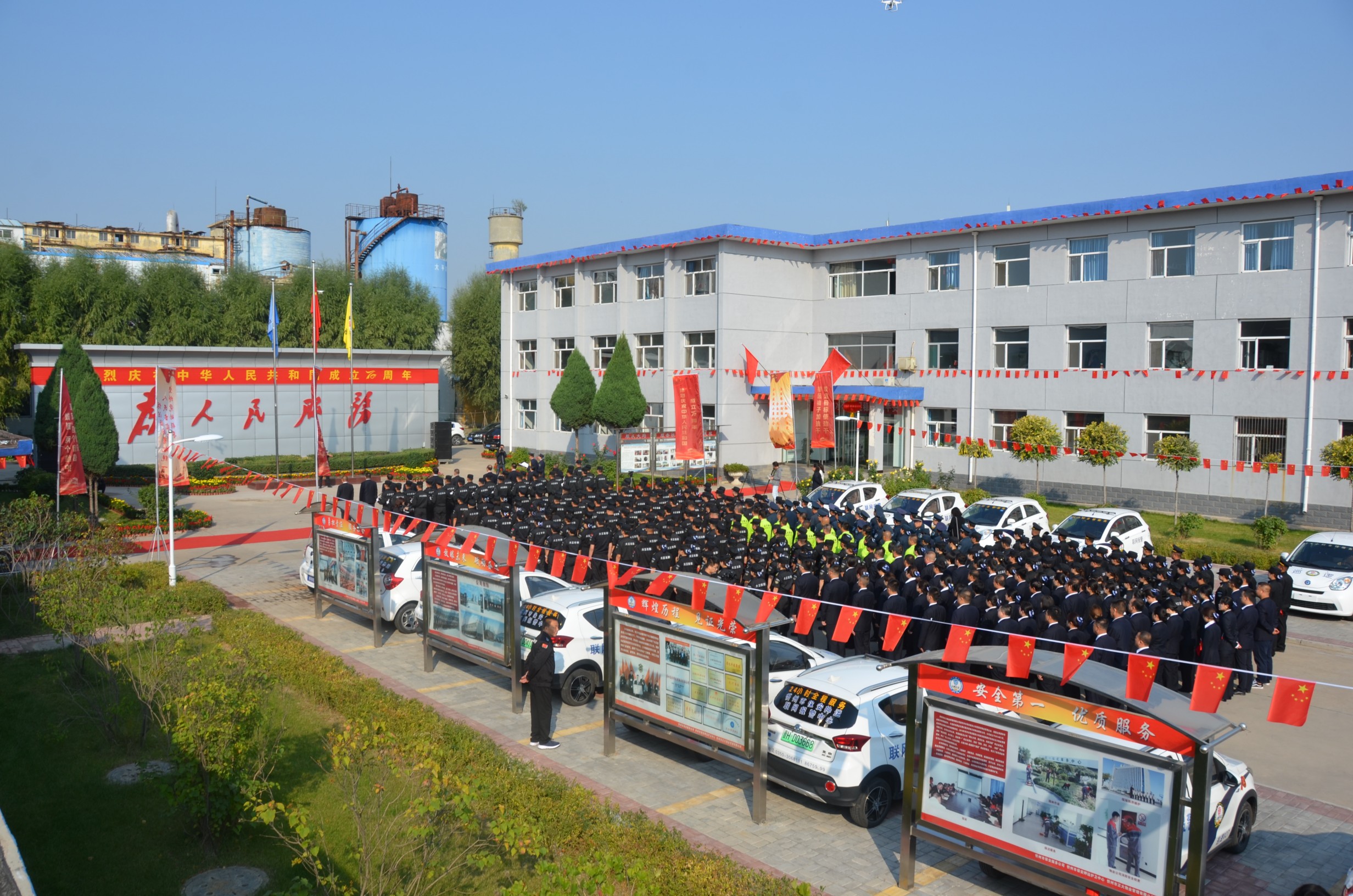 在中華人民共和國成立70周年即將來臨之際,為進一步提高廣大干部職工的愛國意識,營造濃厚的愛國愛企氛圍,激發(fā)正能量、提升凝聚力。9月27日,山西大正保安服務(wù)有限公司在公司城南駐地隆重舉行莊嚴的升旗儀式。黨委書記、董事長張躍生作重要講話,公司黨委委員、副總經(jīng)理趙培宏主持升旗儀式。王明生、邢春生、張瑞東、呂雙明等公司領(lǐng)導(dǎo)、機關(guān)各單位及基層九個分公司的400余名干部職工參加儀式。