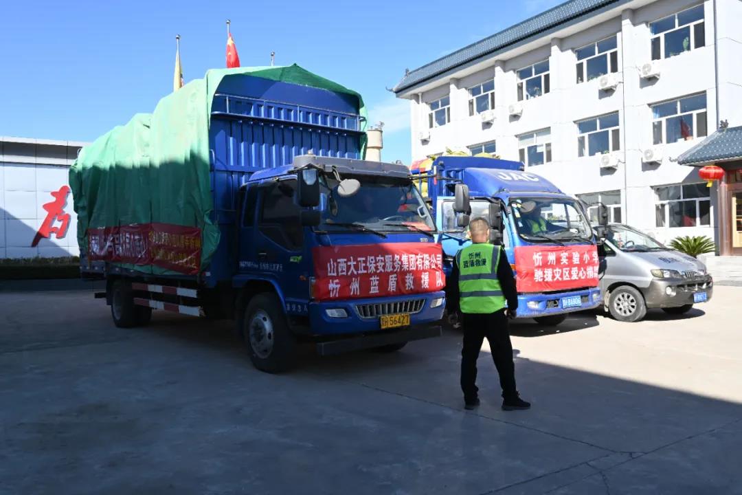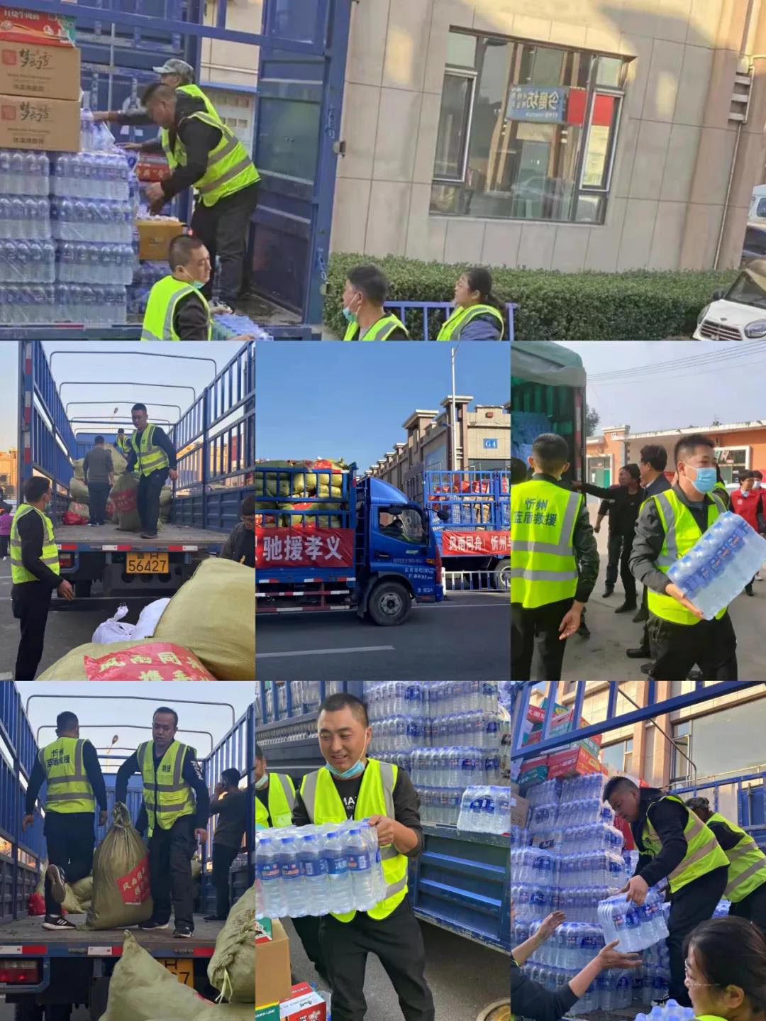 10月16日,山西大正保安服務(wù)集團(tuán)有限公司出動大型貨車兩輛,攜手忻州藍(lán)盾應(yīng)急救援隊(籌)及社會各界愛心人士,裝載著籌集的消毒水40桶、消毒液15箱、方便面320箱、脆筒5箱、礦泉水600件、沙袋4000個、面包35箱、口罩15500個和由忻州實驗小學(xué)等籌集的衣物9000余件等物資,驅(qū)車奔赴孝義市災(zāi)區(qū)。
