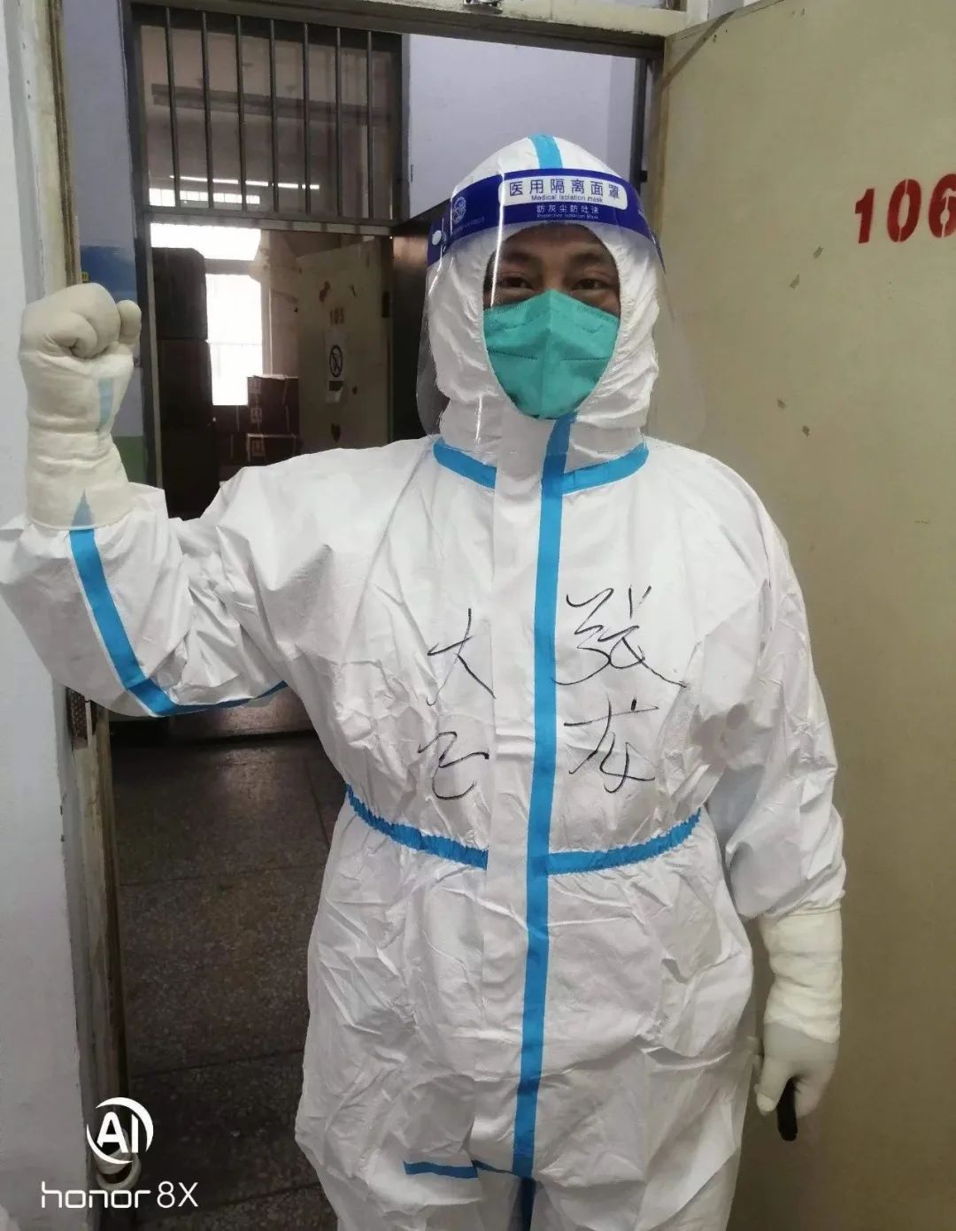 11月16日晚上6點(diǎn),是他們第一次穿著防護(hù)服進(jìn)入隔離區(qū)為隔離人員高風(fēng)險(xiǎn)近距離服務(wù)。關(guān)向宇同志身體高大肥胖,穿脫防護(hù)服要比常人艱難的多,為盡職責(zé)完成任務(wù),自己克服困難,知難而上,跨入隔離區(qū)。二人在隔離區(qū)服務(wù)近四個(gè)小時(shí),出來時(shí)滿身流著汗水,第二天兩人都發(fā)生了身體不適狀況,身體發(fā)冷、咳嗽等癥狀,但是他們沒有畏縮,提振精神,繼續(xù)馬不停蹄的干活,該干啥干啥,該做什做什,忙里又忙外。