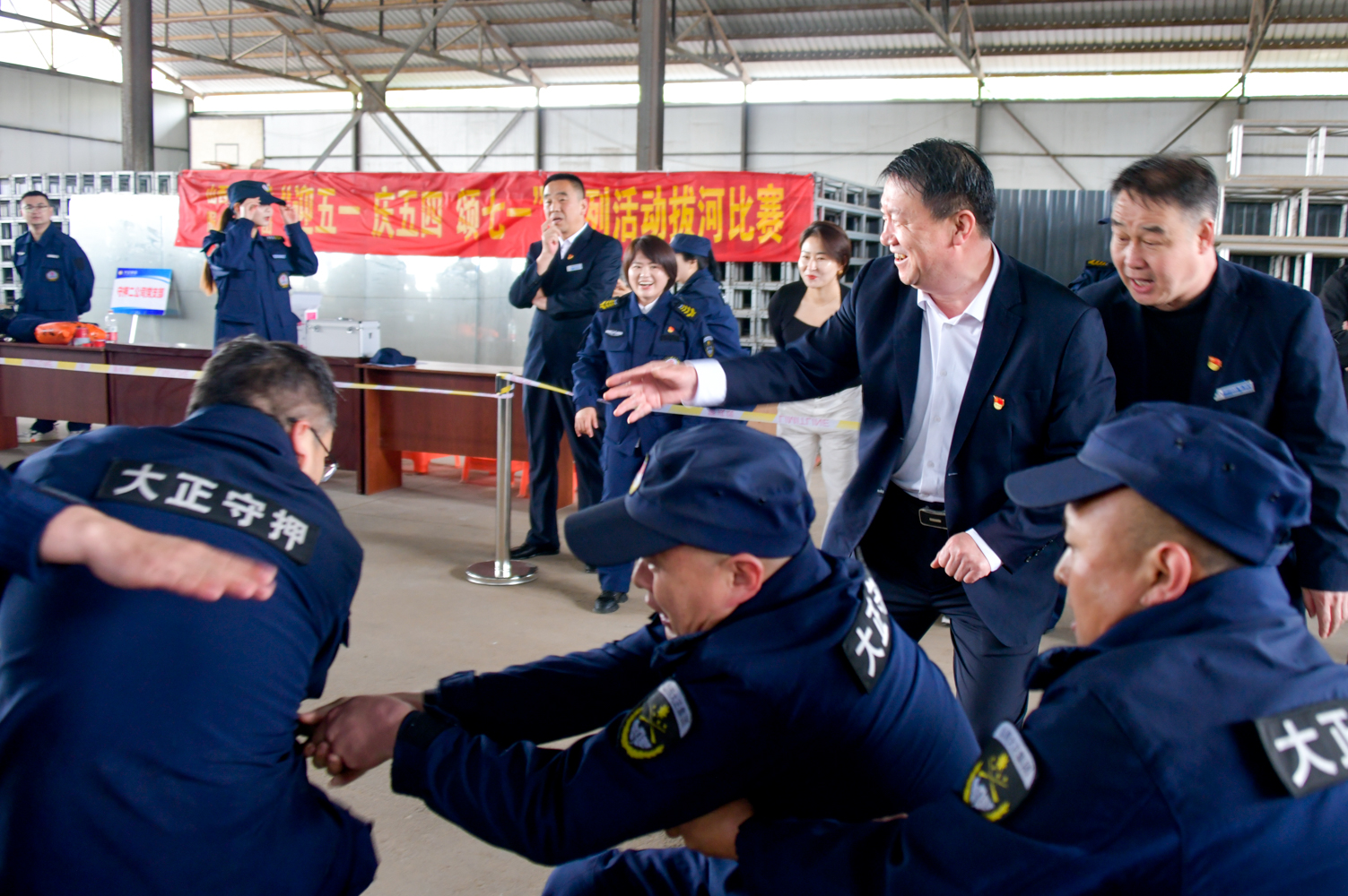 為深入學(xué)習(xí)貫徹黨的二十大精神,團(tuán)結(jié)引領(lǐng)全公司廣大員工奮進(jìn)新征程、建功新時(shí)代,進(jìn)一步活躍員工文化生活,增強(qiáng)廣大員工的凝集力、戰(zhàn)斗力和向心力。5月6日上午,大正集團(tuán)公司舉行2023年 “迎五一、慶五四、頌七一”拔河比賽。集團(tuán)公司黨委書(shū)記、董事長(zhǎng)、總經(jīng)理趙培宏,集團(tuán)公司黨委副書(shū)記、董事、副總經(jīng)理陳志平等公司領(lǐng)導(dǎo)班子成員觀摩比賽,并為現(xiàn)場(chǎng)參賽隊(duì)員鼓舞助威。
