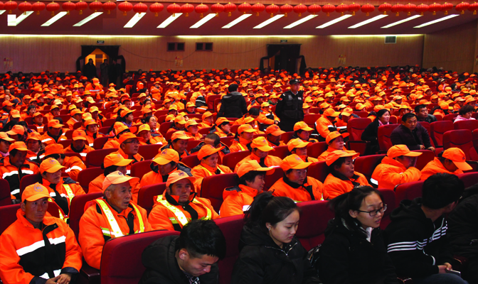 忻州市保安押運(yùn)護(hù)衛(wèi)中心、保安服務(wù)公司總經(jīng)理張躍生、黨委書記陳志平,忻州市環(huán)衛(wèi)處處長石建新和現(xiàn)場500余名環(huán)衛(wèi)工人代表共同觀看了演出。