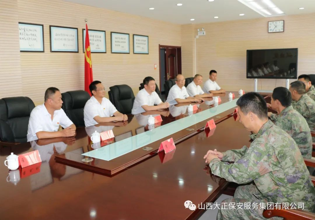 8月1日上午,在中國人民解放軍建軍96周年到來之際,為繼承和發(fā)揚擁軍愛民的光榮傳統(tǒng),由山西大正保安服務(wù)集團有限公司黨委書記、董事長、總經(jīng)理趙培宏,黨委委員、董事、副總經(jīng)理王明生及公司相關(guān)領(lǐng)導(dǎo)組成的擁軍慰問團前往忻府區(qū)人武部開展“八一”慰問活動,人武部政委劉啟國一行熱情接待并表示感謝。