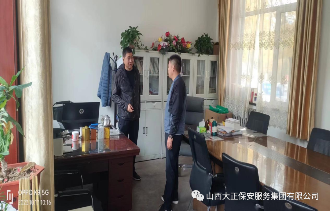 保安公司副經理常文豹、直屬公司副經理陳曉東、前往原平同德科創(chuàng)駐勤點走訪。對駐勤點各崗位進行實地查看對駐地隊員的生活、安全進行關懷,同德保衛(wèi)科陳科長就煤礦安全保衛(wèi)工作所面對的新形勢進行了深入探討和交流,對人員的調配和安排做了對接與部署,礦方對公司的服務質量表示高度認可,對咱們隊員的工作情況給與了充分肯定。