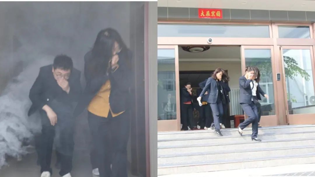 隨著煙霧的升起、消防報(bào)警聲的響起,各樓層人員快速、有序地捂住口鼻、彎下身體,快步有序的撤離到辦公樓前安全地帶,隨后,安全保衛(wèi)部清點(diǎn)人數(shù),確保無(wú)一人遺漏,整個(gè)演練過(guò)程緊張有序。演練人員沒(méi)有絲毫的慌亂,達(dá)到了預(yù)期的效果。
