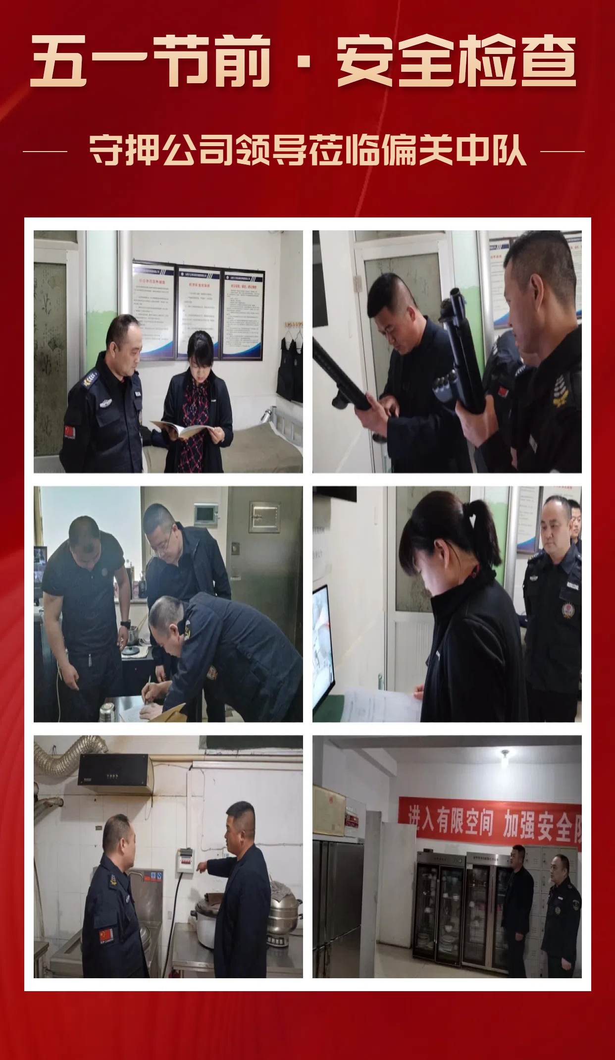 為貫徹落實(shí)集團(tuán)公司《關(guān)于做好2024年“五一”勞動(dòng)節(jié)期間安保工作的通知》的各項(xiàng)工作安排及要求,集團(tuán)公司安全保衛(wèi)部及各子分公司負(fù)責(zé)人認(rèn)真組織并開展了節(jié)前安全大檢查大整改,全面排查各駐地配套設(shè)施、執(zhí)勤駐點(diǎn)及公司辦公大樓的安全風(fēng)險(xiǎn)和隱患,以杜絕所屬工作區(qū)域內(nèi)各類安全事故的發(fā)生,進(jìn)一步加固客戶單位的安全防護(hù)網(wǎng),為即將到來的“五一”勞動(dòng)節(jié)營(yíng)造一個(gè)安全、穩(wěn)定、和諧的氛圍。