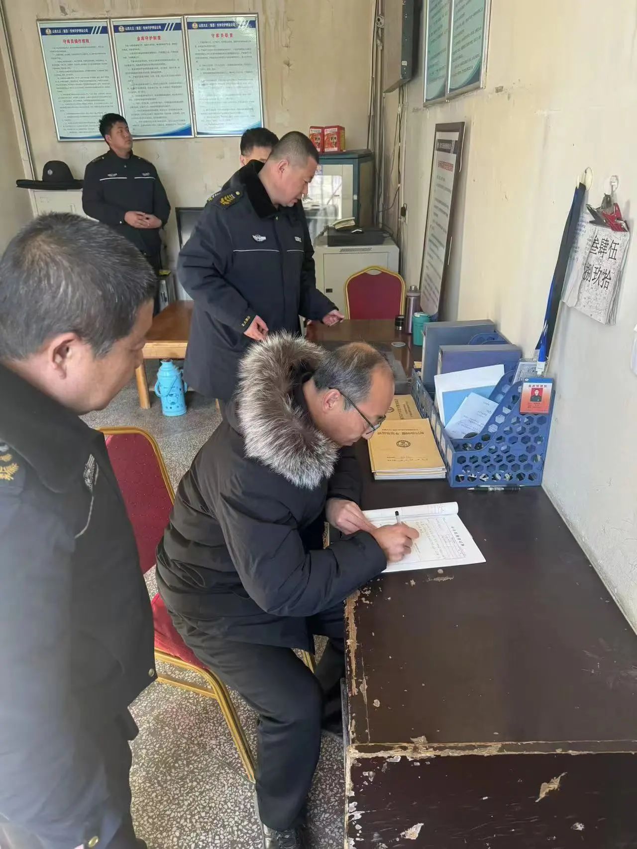 1月15日下午,集團(tuán)公司安全督導(dǎo)檢查組呂雙明、盧文偉、王亮東一行深入守押公司二大隊定襄中隊開展全面安全檢查工作,中隊長喬昺耀及副中隊長梁巖、韓勇全程配合。