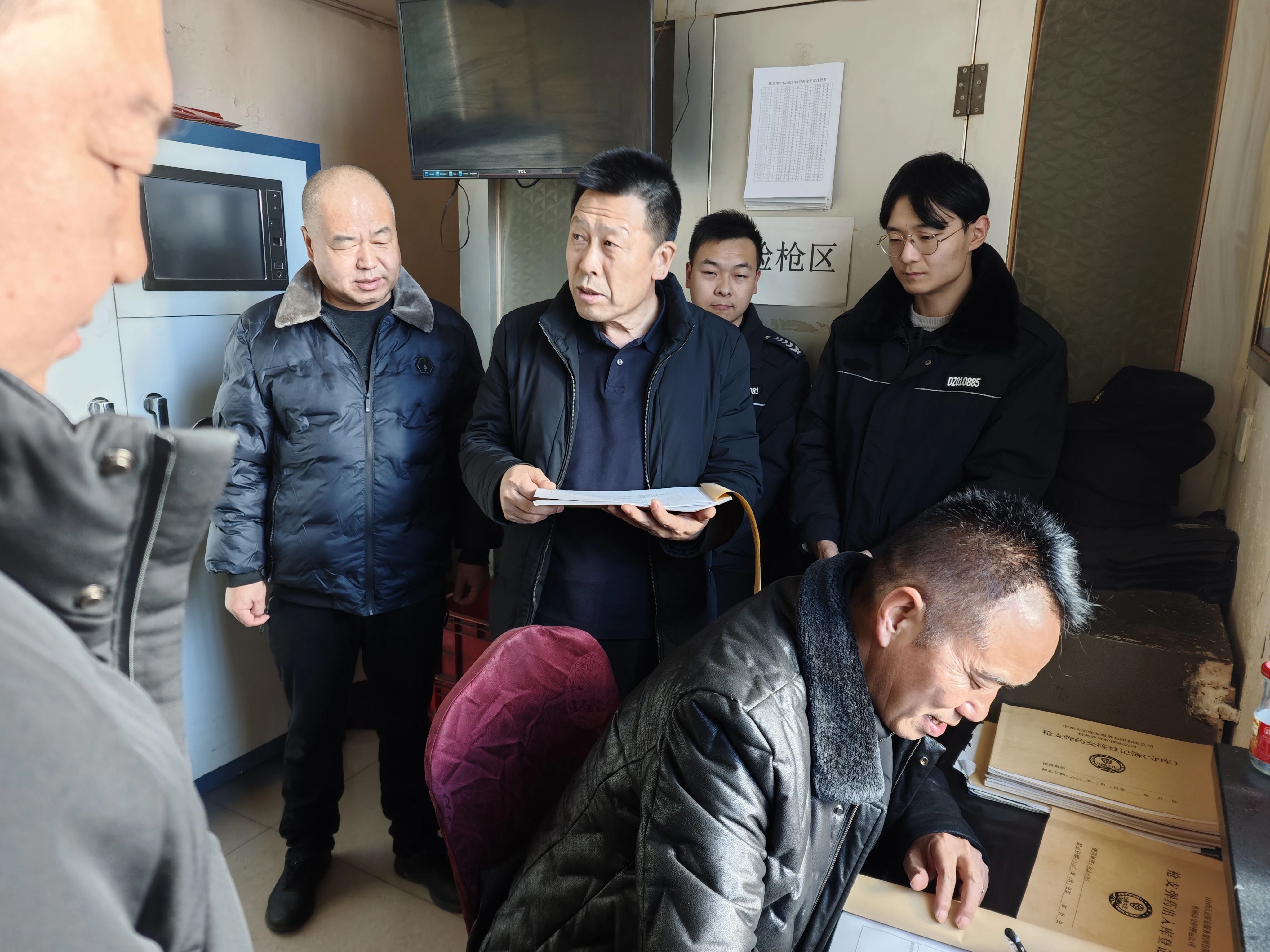 1月9日上午,集團(tuán)公司安全保衛(wèi)部孟建文、董淳文、李朋一行對守押公司二大隊五臺中隊進(jìn)行了年底專項安全檢查,全面總結(jié)和回顧2024年度的安全工作。此次檢查圍繞三個重點展開:一是2024年度安全文件的落實情況,二是安全隱患排查及整改工作進(jìn)展,三是全年安全責(zé)任的履行情況。針對發(fā)現(xiàn)的問題,檢查組提出了明確的整改要求。