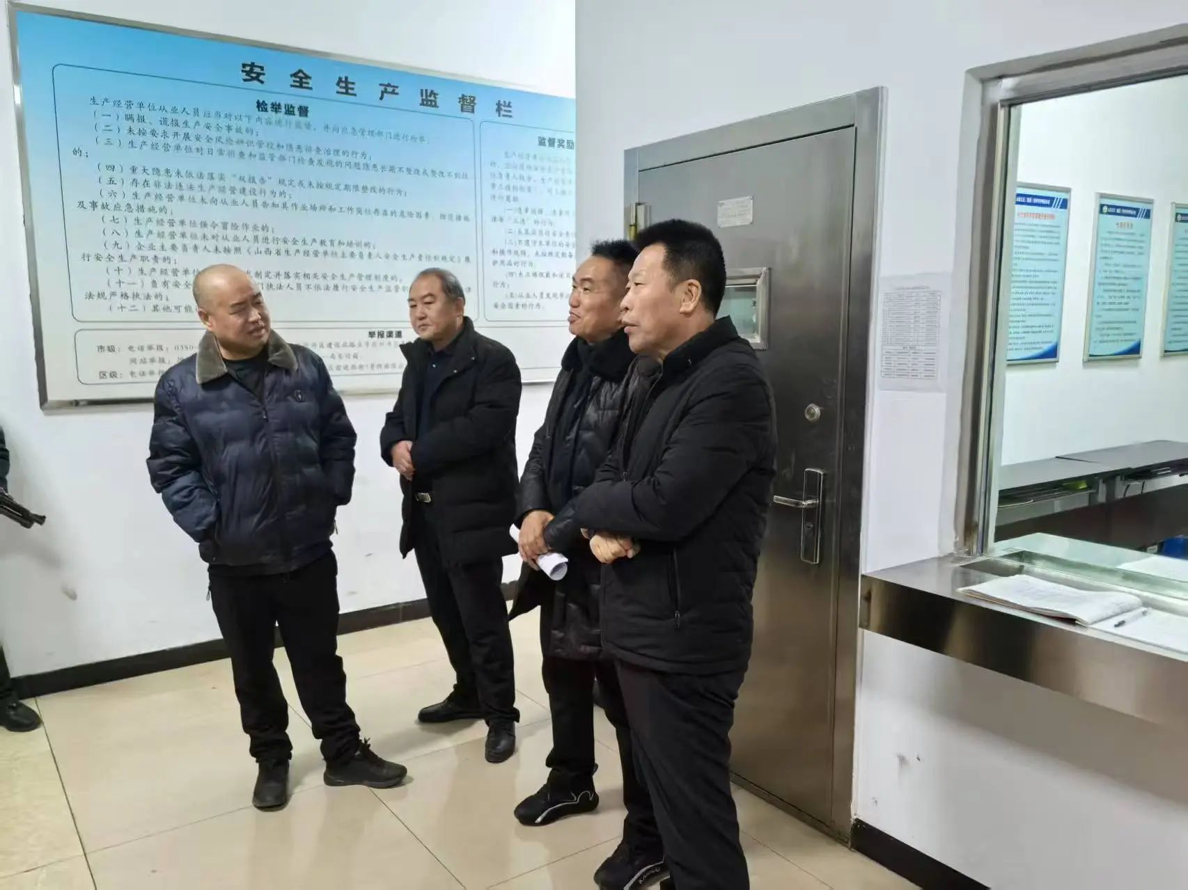1月16日,集團(tuán)公司安全督導(dǎo)檢查組張瑞東、張龍、吳杰、董淳文一行赴守押六大隊偏關(guān)中隊,開啟全面深入的安全檢查工作。守押公司六大隊隊長崔建偉 、副大隊長白云飛 、中隊長高虎生全程陪同,積極配合檢查組各項工作。
