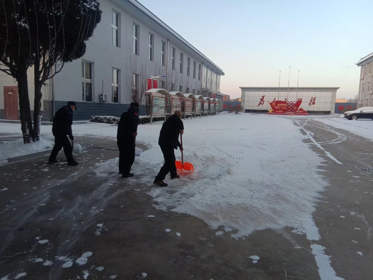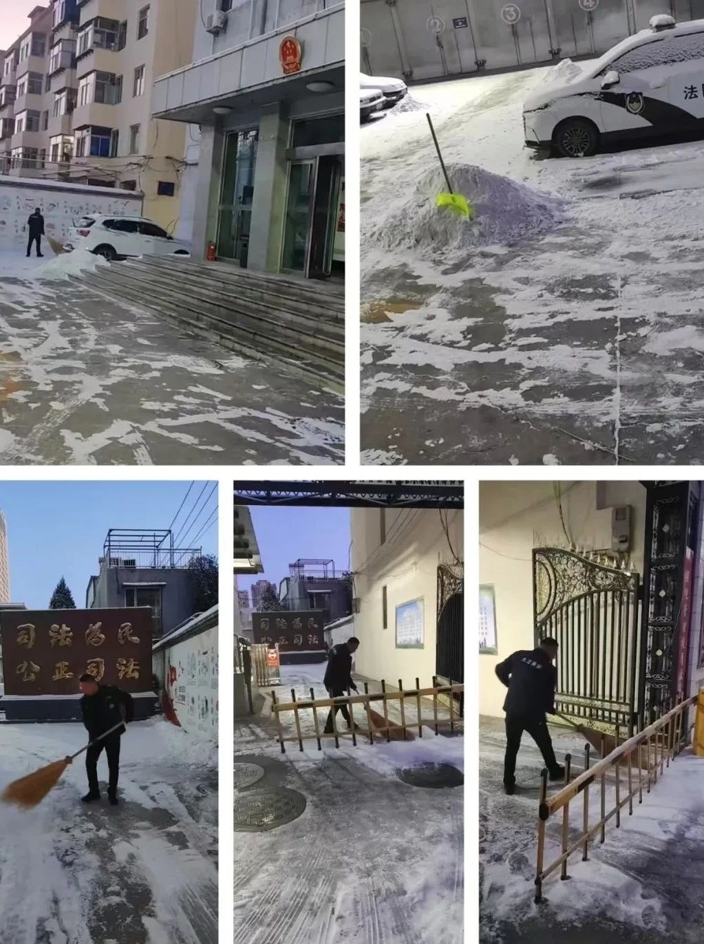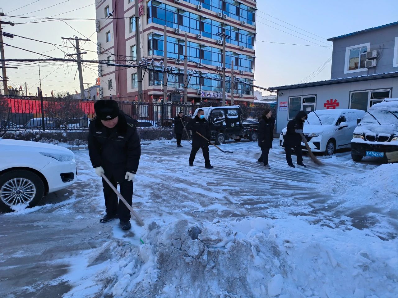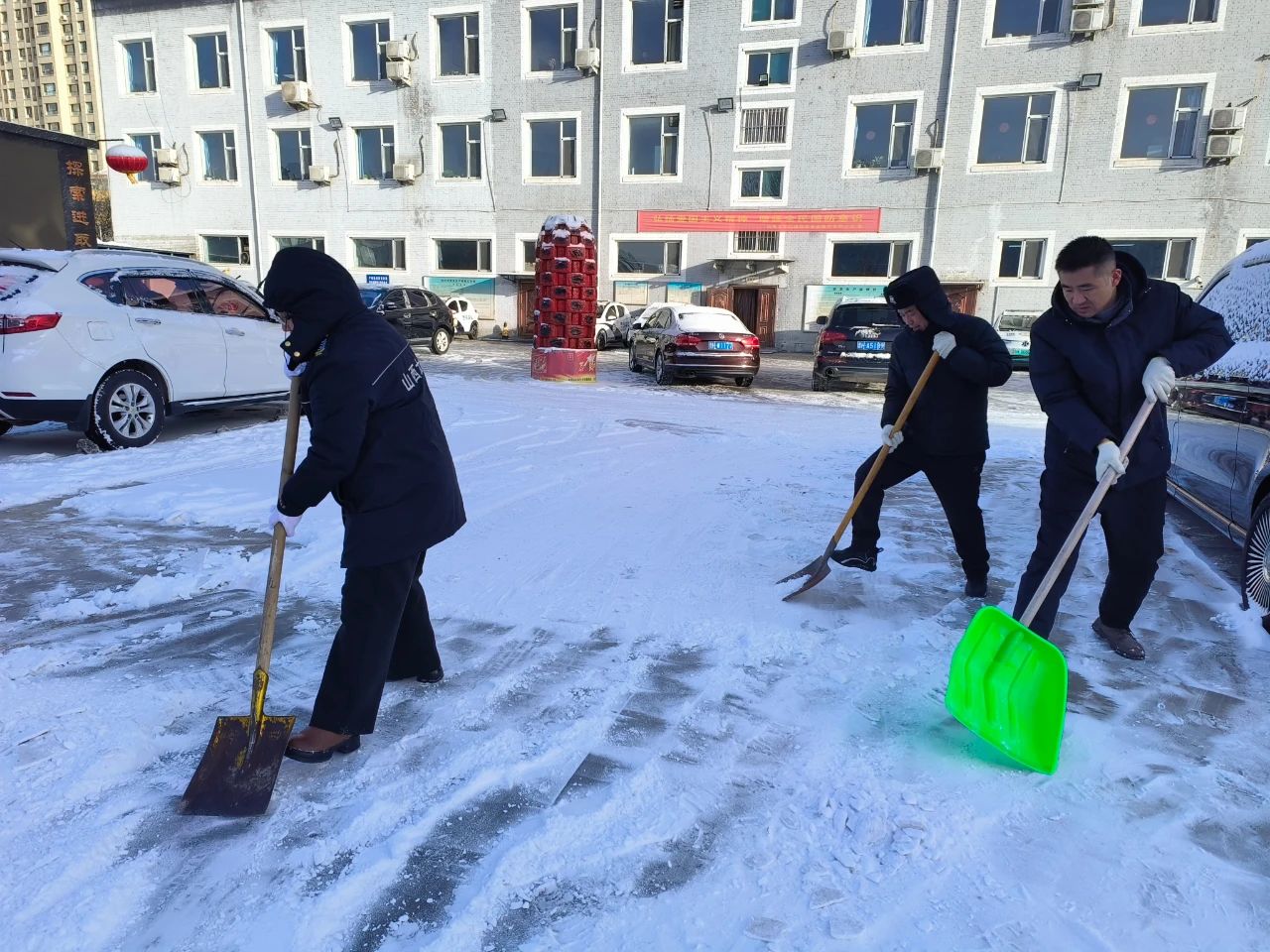 清掃積雪的工作看似簡單,卻充滿了挑戰(zhàn)。積雪已經(jīng)結(jié)成厚厚的冰層,路面濕滑,每一步都需要小心翼翼。盡管如此,保安隊伍從不畏懼嚴(yán)寒和困難,始終保持著高度的責(zé)任感,認(rèn)真負(fù)責(zé)地完成任務(wù)。無論是周邊的道路,還是進(jìn)出頻繁的停車場,哪里有積雪,哪里就有我們忙碌的身影。在大家的努力下積雪很快被清理干凈,確保了每條道路暢通無阻,為客戶單位提供了一個安全、便捷的環(huán)境,為市民的安全出行保駕護(hù)航。