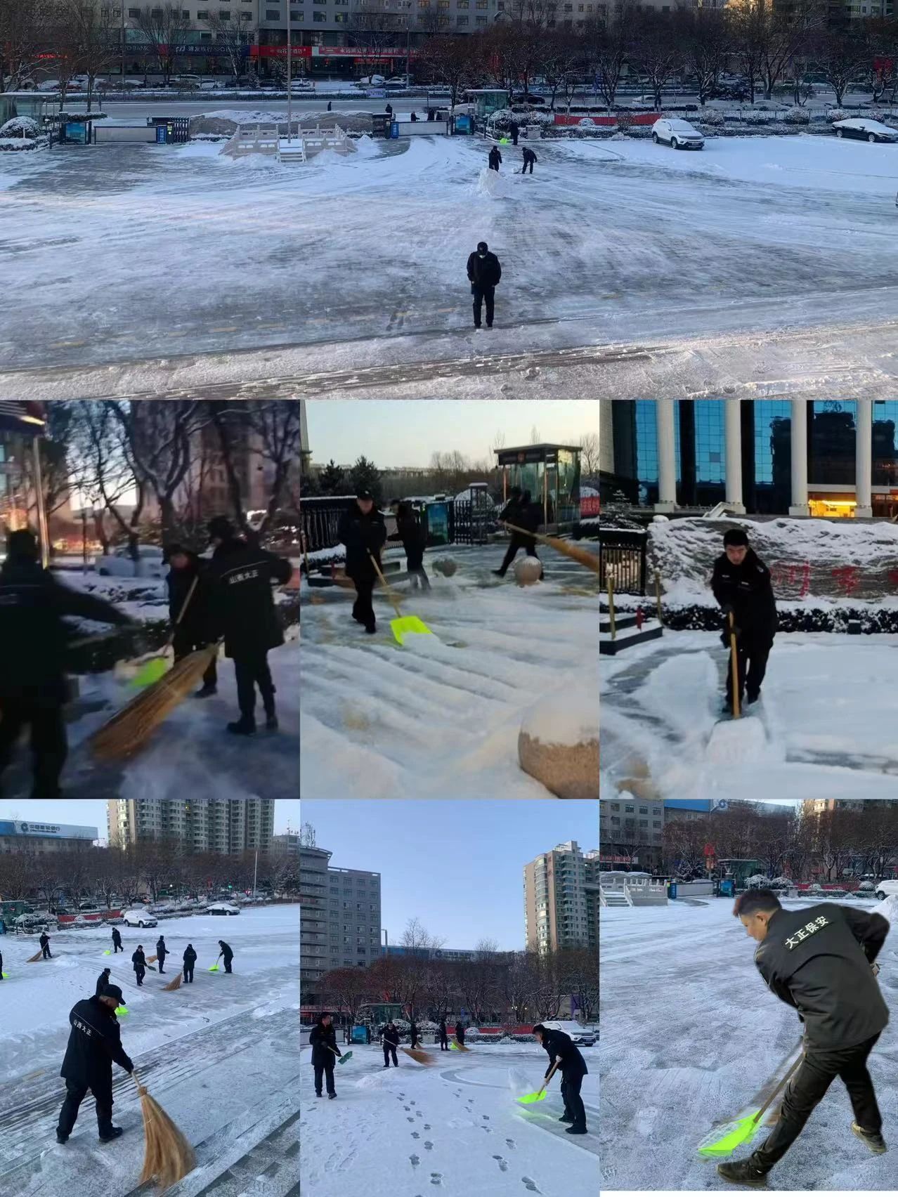 1月25日,忻州市迎來了新年的第一場大雪,整個城市銀裝素裹,美不勝收。然而,積雪覆蓋了道路與工作場所,給出行和工作帶來了不小的困擾。山西大正保安服務(wù)集團(tuán)有限公司各駐勤點的保安隊伍積極行動,迅速清掃積雪,全力保障客戶單位和市民的出行安全。我們的職責(zé)不僅是保障客戶單位的安全,還要為市民創(chuàng)造整潔、安全的環(huán)境。