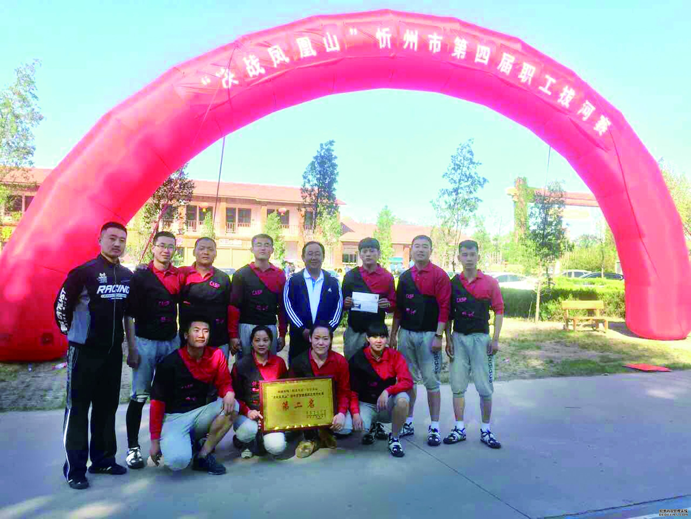 4.27日,舉行了開幕式后,決戰(zhàn)鳳凰山拔河比賽開始了。張躍生總經理參加了開幕式,給我們做了賽前動員,所有隊員都卯足了勁,我們不光自己做好準備更是觀察對手實力特征。比賽共分四十五場 ,通過激烈較量,我們也取得了第二名的優(yōu)異成績?偨浝砜次覀兿铝速悎瞿樕l(fā)白,感動的流下了眼淚,雖然我們這次拿了第二名,下次我們一定要把冠軍奪回來!