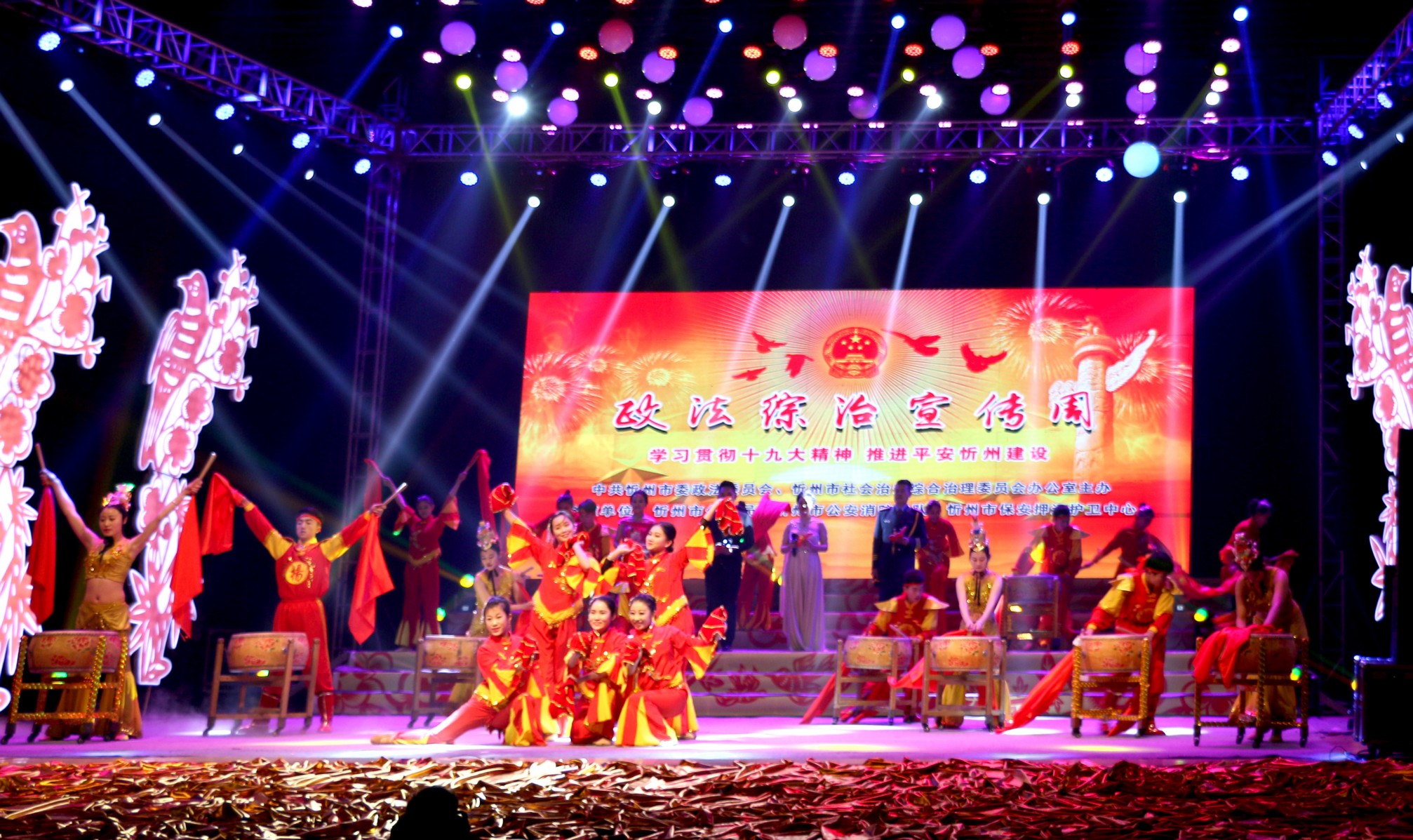 晚會(huì)以“學(xué)習(xí)貫徹十九大精神,推進(jìn)平安忻州建設(shè)”為主題,歌頌了忻州市在平安建設(shè)中取得的卓越成績(jī)和政法綜治戰(zhàn)線干部的無(wú)私奉獻(xiàn)精神。晚會(huì)節(jié)目精彩紛呈,“牽手平安”藝術(shù)團(tuán)表演的《鼓舞中華》、男女對(duì)唱《幸福贊歌》、小合唱《強(qiáng)軍戰(zhàn)歌》、歌伴舞《建設(shè)和諧大家園》等節(jié)目獲得了觀眾陣陣掌聲。