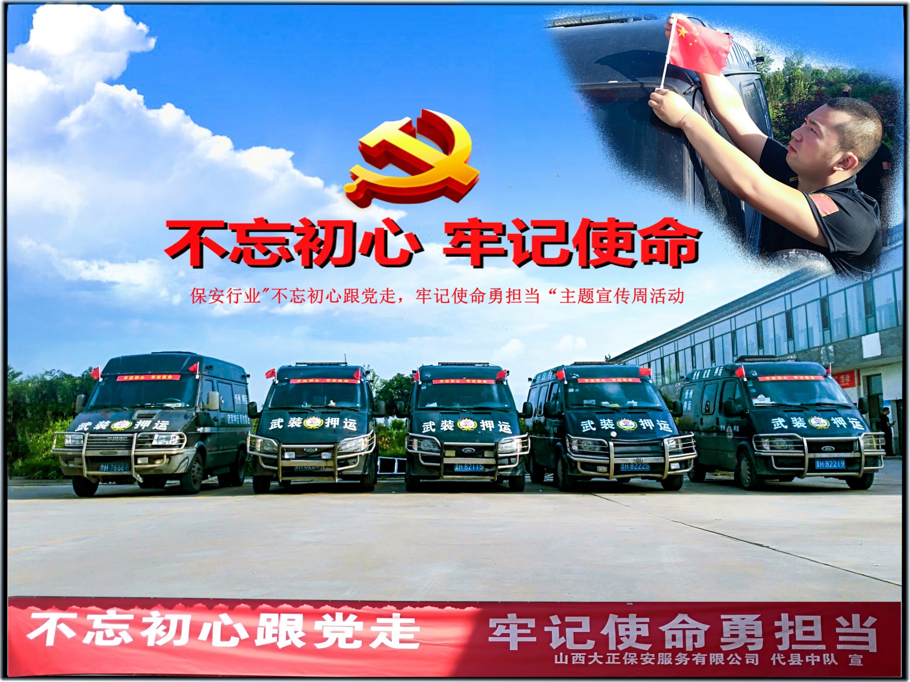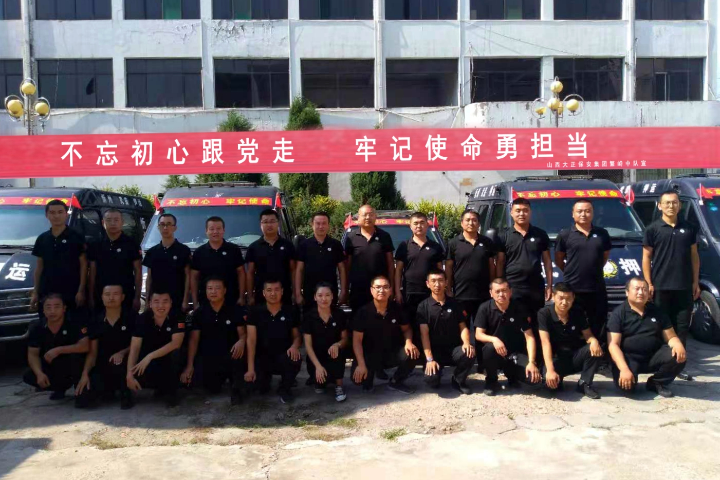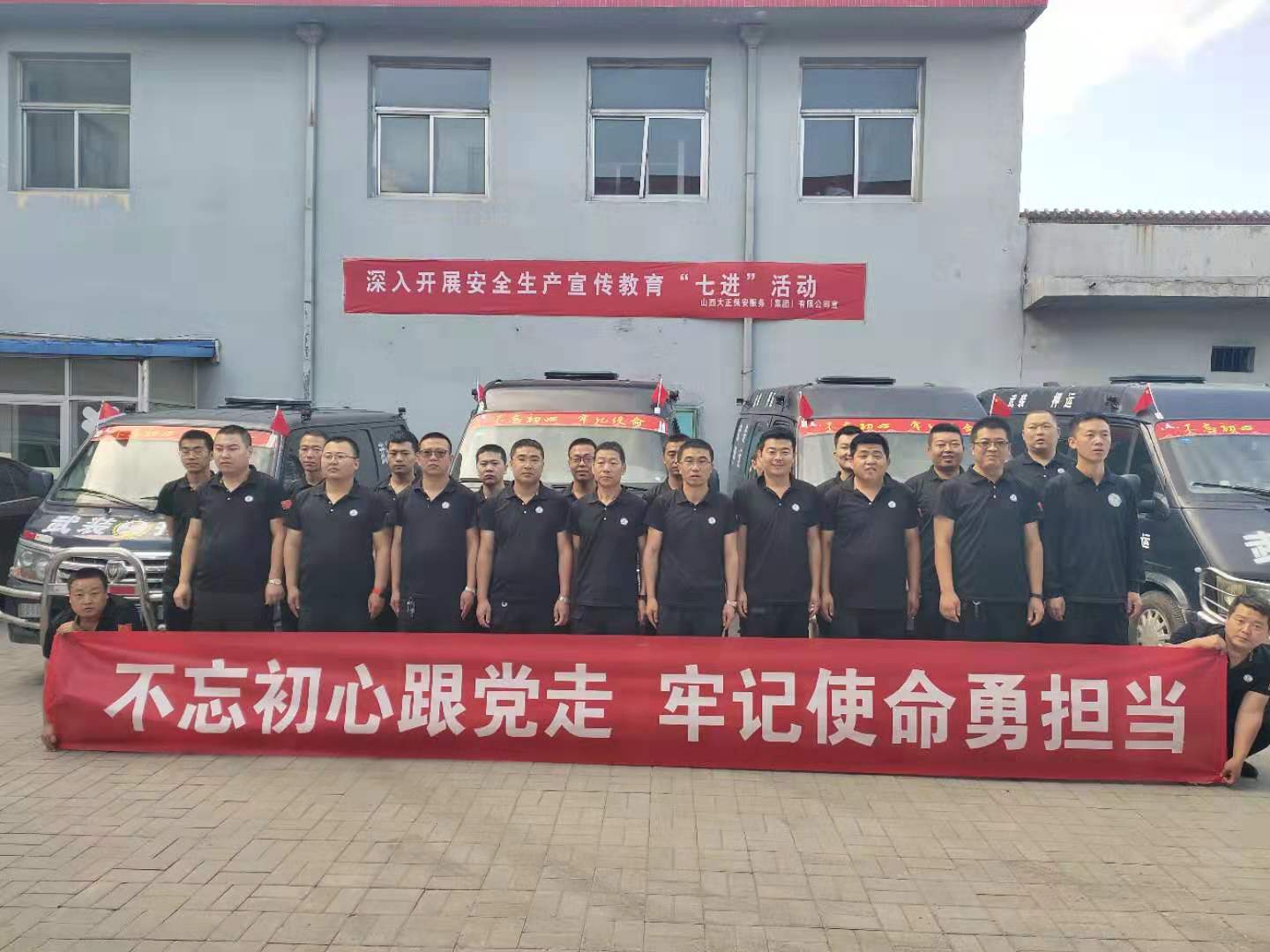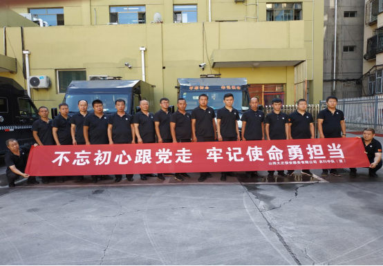 守押五公司公司各中隊積極策劃布置場地,隊員們積極主動將印有“不忘初心跟黨走、牢記使命勇?lián)?rdquo;字樣的條幅懸掛在中隊最顯眼的地方,營造濃厚氛圍。要求全體員工,在工作中認真做到“人、車、槍、彈”的安全,為公司發(fā)展壯大的藍圖上勾勒上自己的一筆。