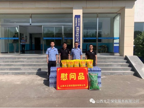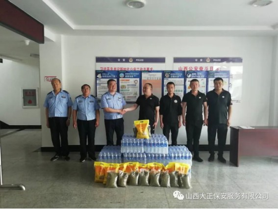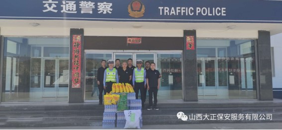 6月3日,山西大正保安服務(wù)(集團(tuán))有限公司河曲中隊(duì)代理中隊(duì)長(zhǎng)霍健,帶領(lǐng)中隊(duì)隊(duì)員代表公司慰問(wèn)了河曲縣公安局交通警察大隊(duì),為奮斗在交通指揮一線的縣交警大隊(duì)民警送去防暑降溫慰問(wèn)品。將關(guān)愛(ài)送到一線,把清涼送到一線,確保一線交通干警同志們度過(guò)一個(gè)安全、衛(wèi)生、清涼的夏季。感謝一線交警不畏烈日、日夜堅(jiān)守崗位,確保了城區(qū)干道交通暢通、人民出行安全,營(yíng)造了良好的道路交通環(huán)境。交警大隊(duì)副隊(duì)長(zhǎng)李強(qiáng)接受了慰問(wèn),并表示:“有了企業(yè)的關(guān)愛(ài)及社會(huì)各界的理解和支持,讓交警感受到了無(wú)盡的清涼。全體民輔警將繼續(xù)發(fā)揚(yáng)‘能吃苦、能戰(zhàn)斗、能奉獻(xiàn)’的優(yōu)良作風(fēng),以更加飽滿的工作熱情投入工作中,以實(shí)際行動(dòng)回報(bào)社會(huì)各界的關(guān)愛(ài)。”