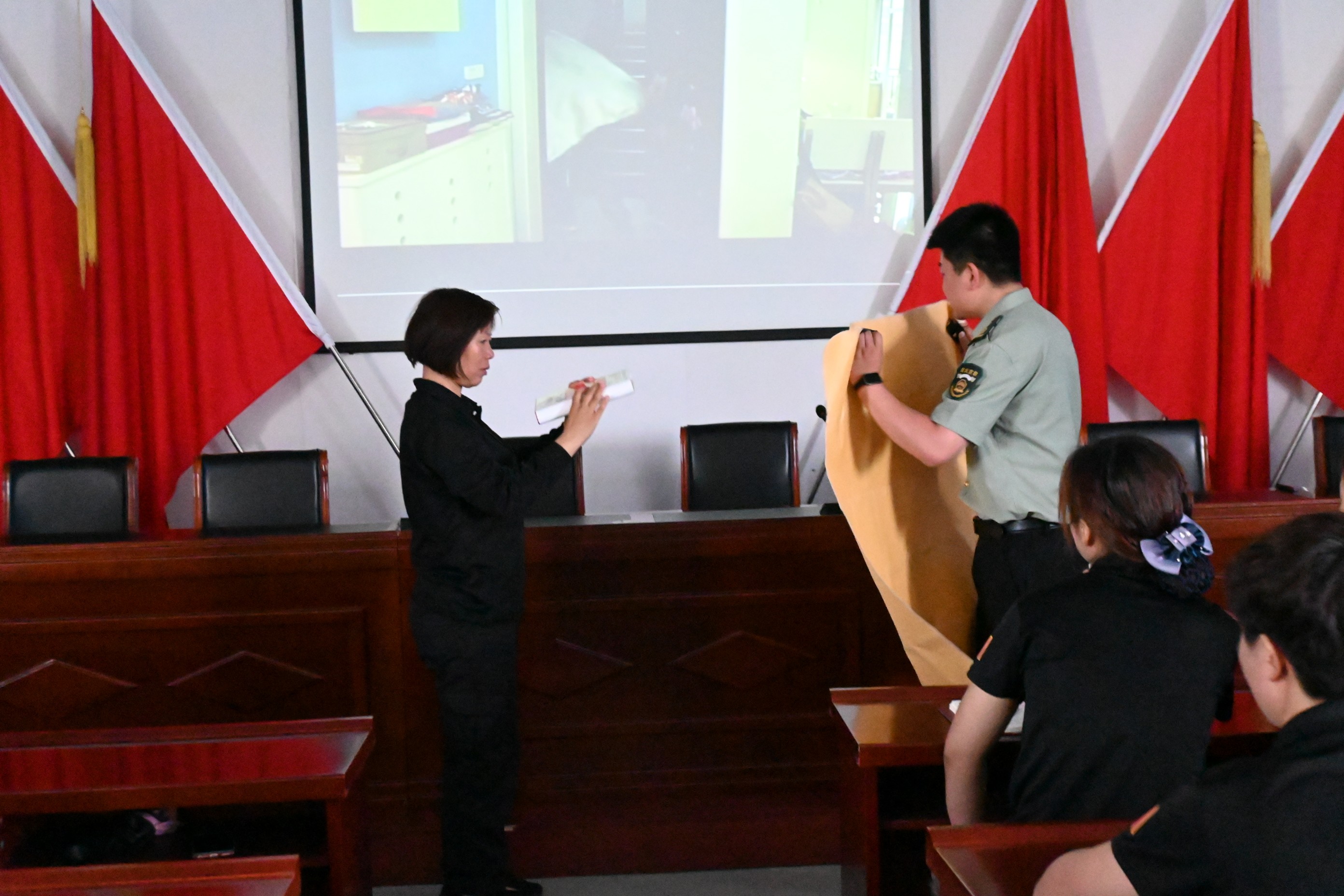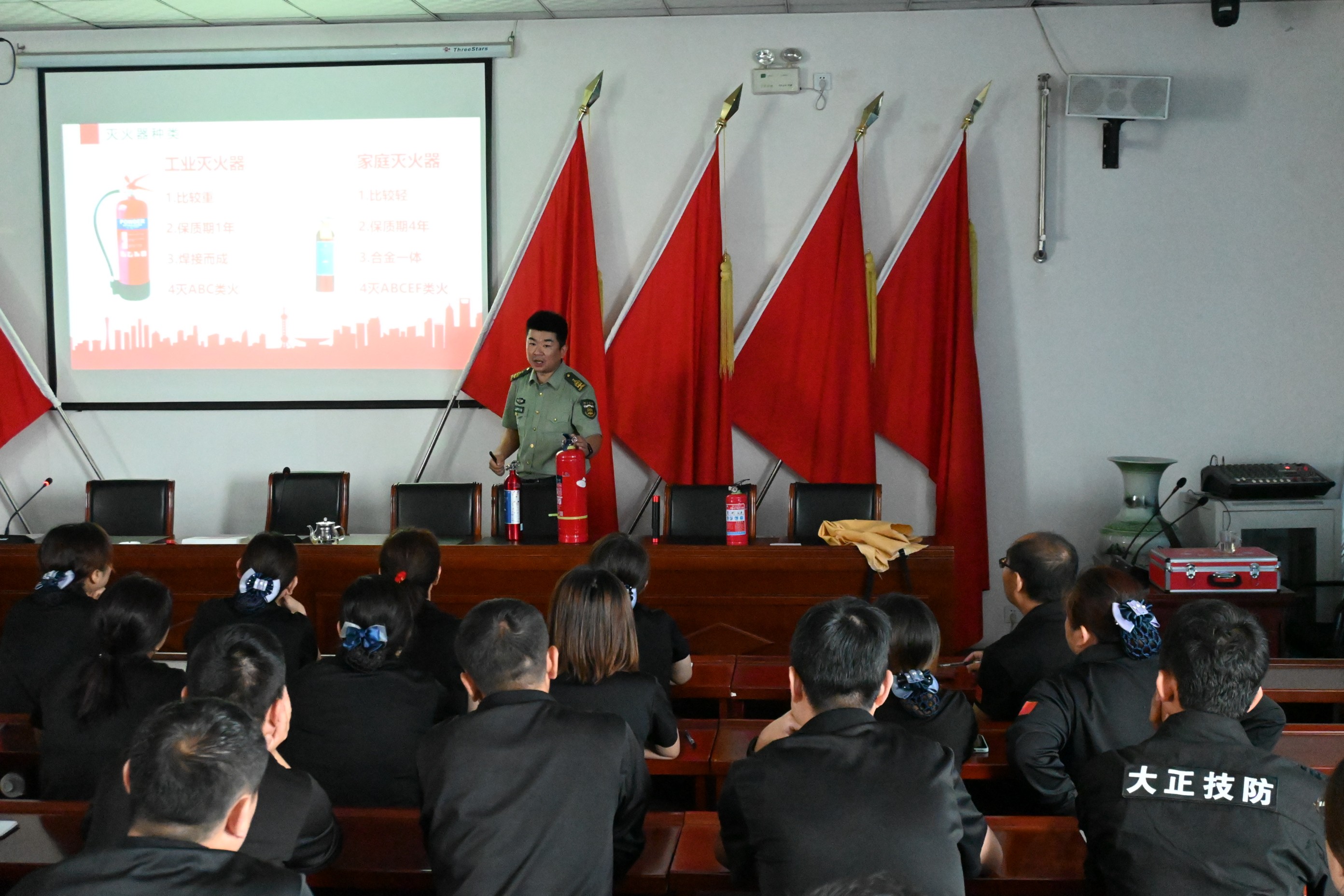 培訓(xùn)課上,張教官從火災(zāi)定義、火災(zāi)種類、滅火工具、防范措施幾方面現(xiàn)場教學(xué),通過視頻播放的方式,以觸目驚心的火災(zāi)案例警示短片,向大家展示了建筑、倉庫、公共場所、車輛、居家等區(qū)域的消防安全隱患,給大家敲響消防安全警鐘。其次是對日常生活中和公共聚集場所的防火安全知識做了詳細的介紹,同時還對滅火器的選擇與使用以及火場應(yīng)急措施與逃生進行了全面的講解。