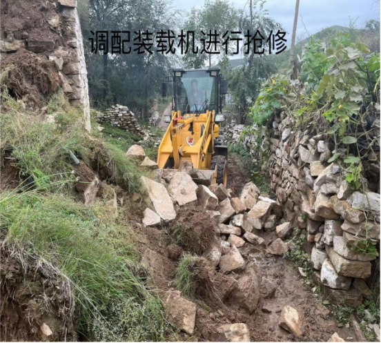 在搶修過程中,工作隊(duì)與村民們共同克服了惡劣天氣帶來的困難,裝載機(jī)的操作手精準(zhǔn)地移除了坍塌的土石,而其他人員則協(xié)助清理現(xiàn)場(chǎng),確保了搶修工作的順利進(jìn)行。經(jīng)過數(shù)小時(shí)的緊張勞動(dòng),破損的窯洞得到了妥善處置,村民們的生活出行秩序得以恢復(fù)。