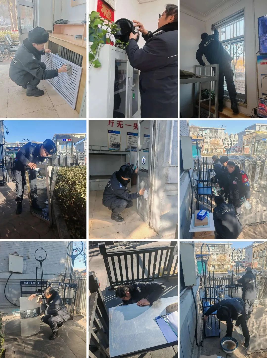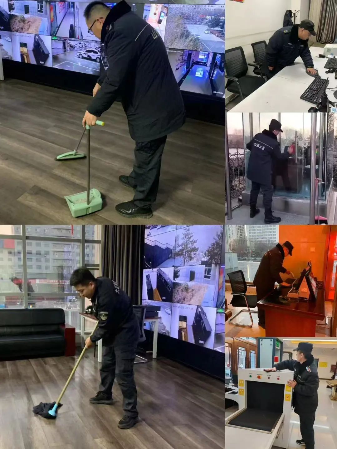 連日來,山西大正保安服務(wù)集團公司各值勤崗點在保質(zhì)保量做好本職安保工作的基礎(chǔ)上,自覺從各自駐勤點綜合環(huán)境情況出發(fā),主動利用空余時間開展衛(wèi)生大掃除活動,著重對執(zhí)勤門衛(wèi)室、崗?fù)ぶ苓、窗戶窗臺、道桿道閘以及消防防暴器材等區(qū)域、設(shè)施進(jìn)行了清掃和整理。