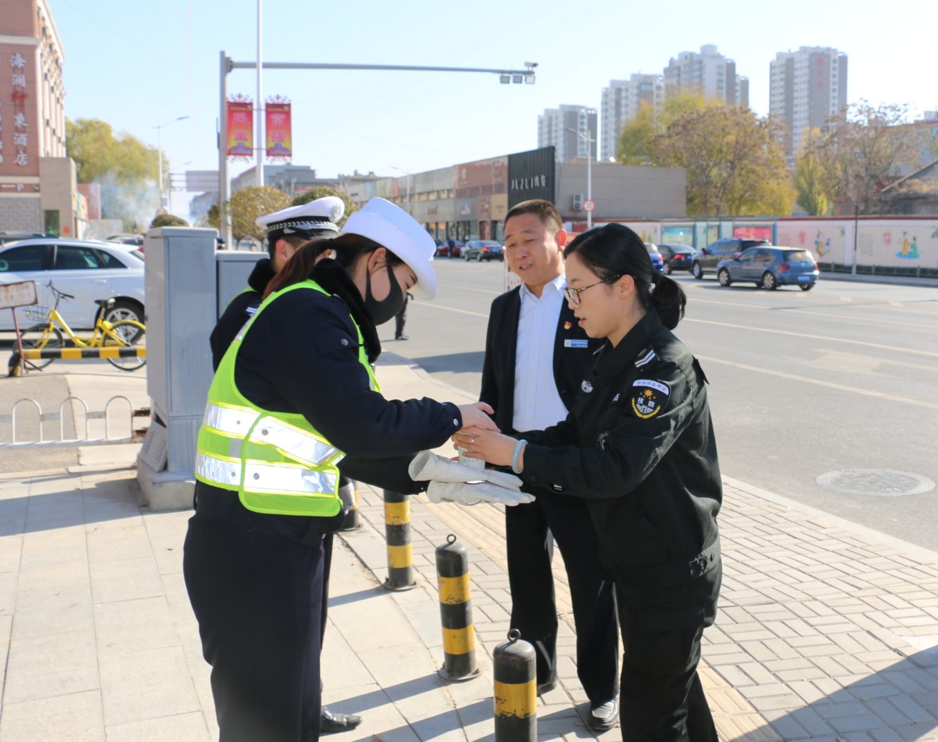 11月14日,技防公司經(jīng)理郭二平一行深入各個執(zhí)勤點,慰問了奮斗在一線執(zhí)行勤務的同志們及交警隊員。