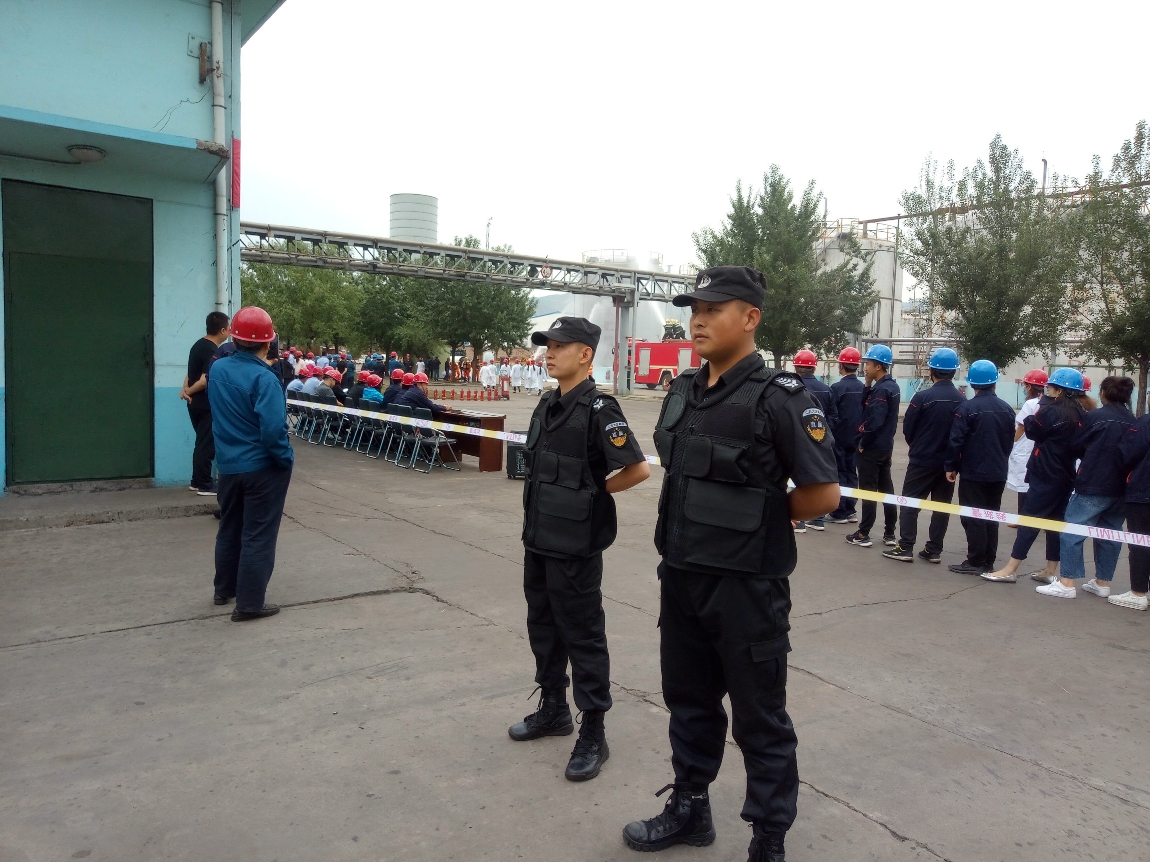 為了提高職工應(yīng)對突發(fā)事件能力,提高對重大危險(xiǎn)源緊急事故的應(yīng)急處置技能,降低事故給企業(yè)帶來的財(cái)物損失率,減少事故對環(huán)境的影響,保障職工的生命和企業(yè)財(cái)產(chǎn)安全。6月15日,鑫宇公司駐勤點(diǎn)組織開展了一次關(guān)于“綜合罐區(qū)粗苯泄露燃燒事故應(yīng)急演練”,本次演練特邀岢嵐消防隊(duì)參與,縣安檢局、環(huán)保局等單位領(lǐng)導(dǎo)現(xiàn)場觀摩。在整個(gè)演練過程中我直屬隊(duì)員承擔(dān)警戒任務(wù),保證演練的順利進(jìn)行。