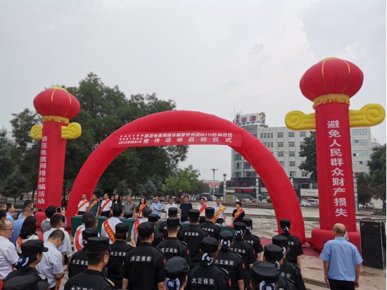 6月11日,山西大正牽手平安文化藝術(shù)公司在日月廣場參加由忻州市公安局、忻州市人民銀行和山西大正保安服務有限公司聯(lián)合組織開展的“防范電信網(wǎng)絡詐騙暨忻州撥96110防騙熱線宣傳活動啟動儀式”。